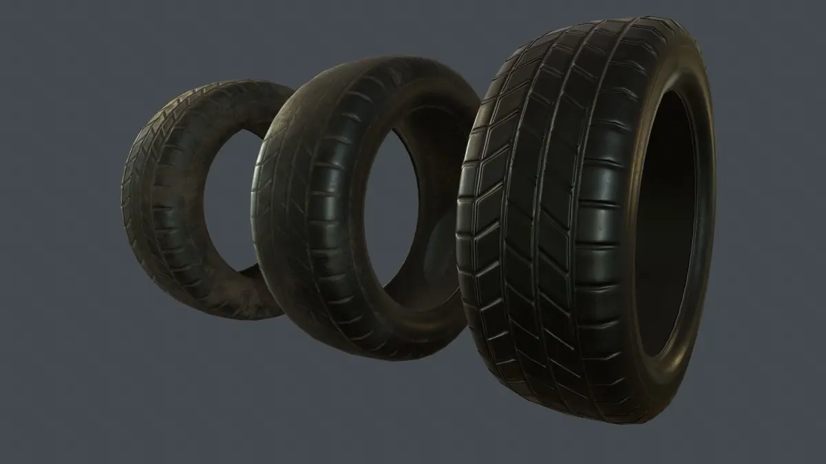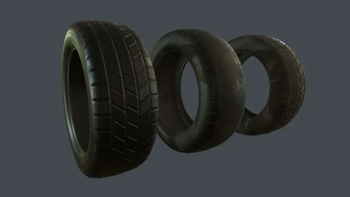 Low poly rubber tire with PBR Textures. There are three different tire variations: Dirty, Clean and Old
