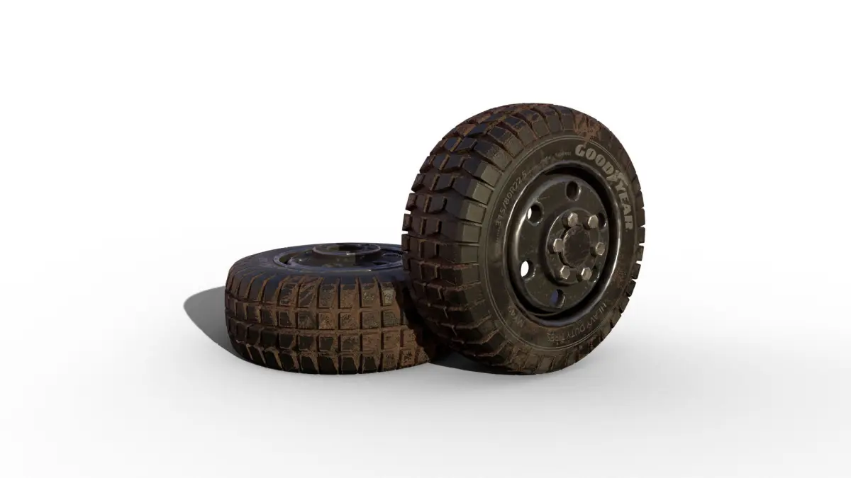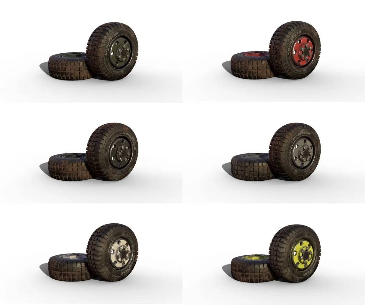 3D Truck Tire model with PBR textures. There are three variations; clean, dusty and dirty. Textures contain multiple color choices. Detailed enough for close-up renders.4k textures including;