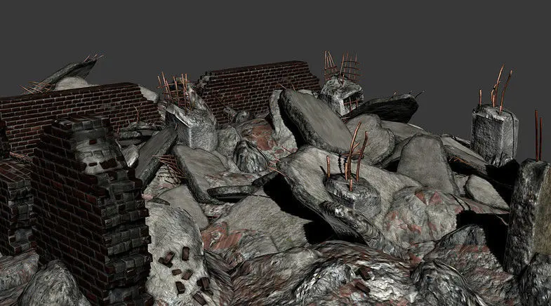 A collection of game ready rubble, concrete and broken brick meshes ready for your game engine.