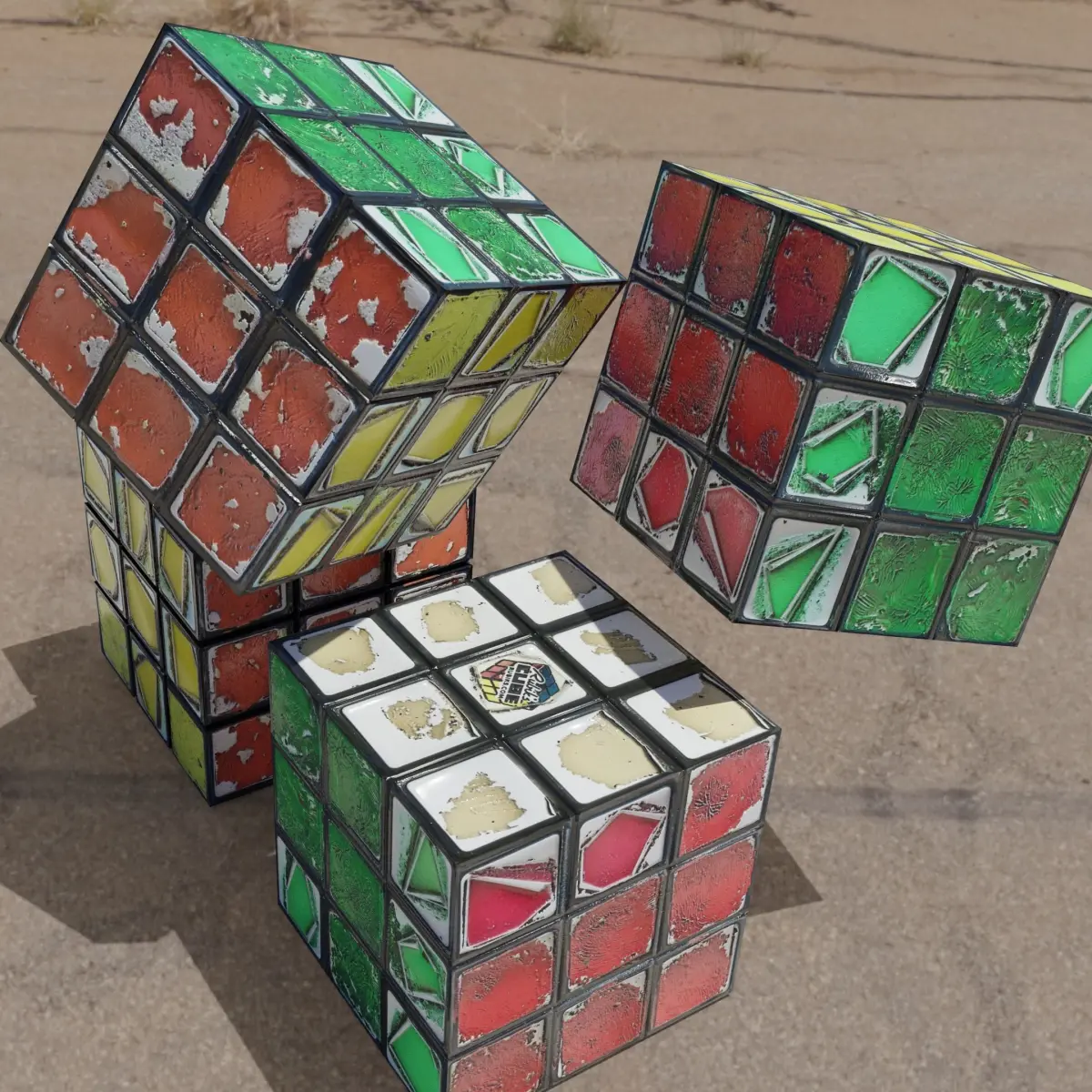 I'd like to introduce my model of Rubics Cube.It dosent look like a just cube, as you may noticed - This is a 10 yers old box, with dirty, scratches and damged. The middle part of blue side was broken, insded of buying a new one, I designed and print a missing pice on 3d printer (ink jet). I left a cavity for a blue resign or some pigment, but I have not applied this yet. (that part can be downloaded from my models).