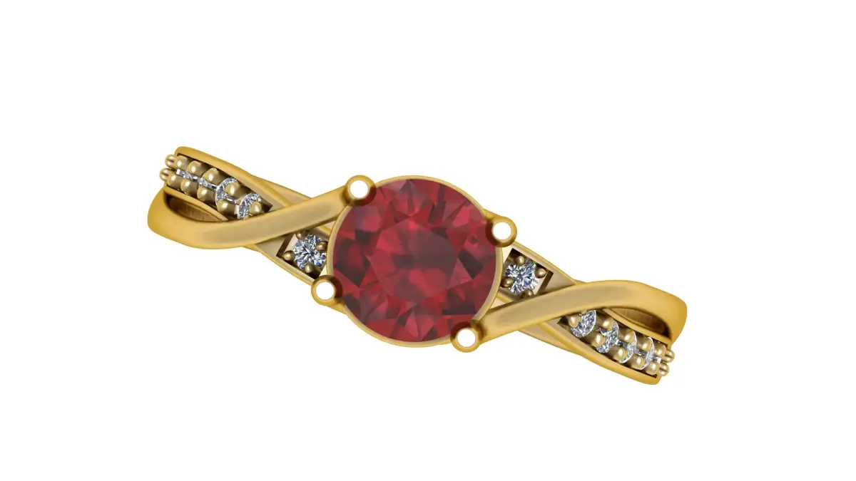 An exquisite Ruby Pavé Trellis Ring, featuring a vibrant ruby centerpiece surrounded by pavé-set stones on a beautifully crafted trellis-style golden band. The intricate lattice design enhances the brilliance of the gemstones, symbolizing passion, love, and elegance. Perfect for engagements, anniversaries, or as a luxurious statement piece, this ring blends timeless artistry with modern sophistication.