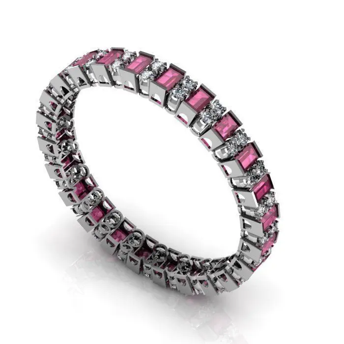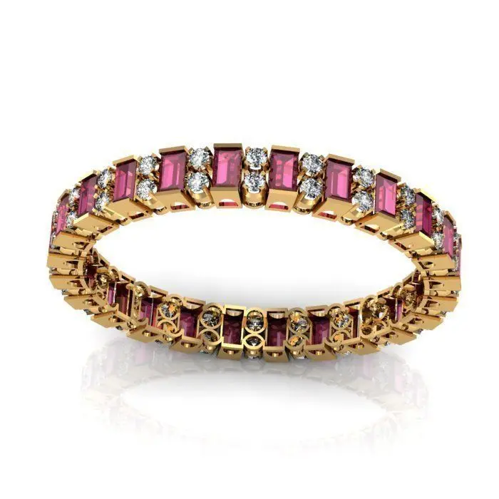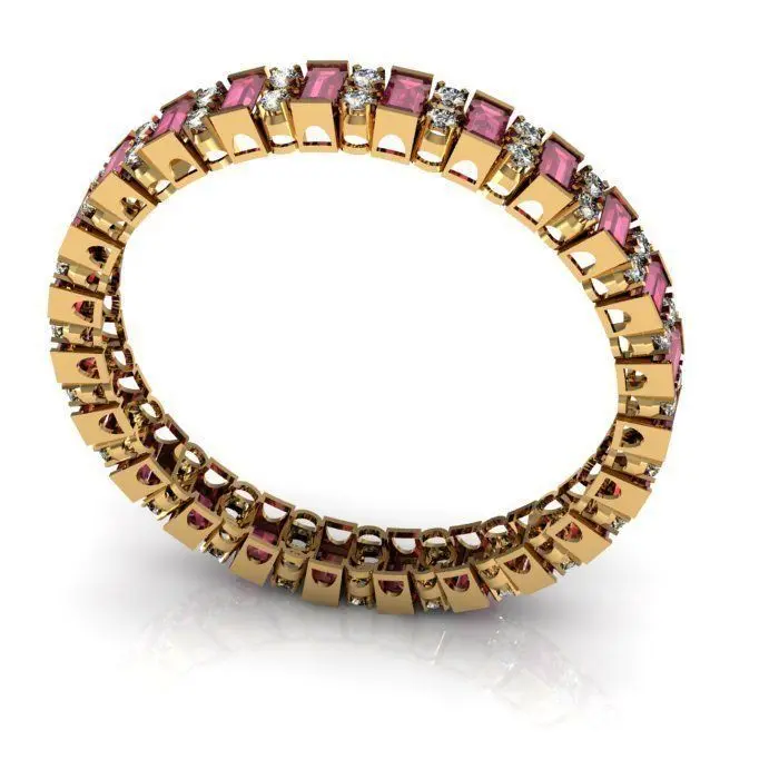 Ruby Stone and White Round zircon Bangle Bracelet