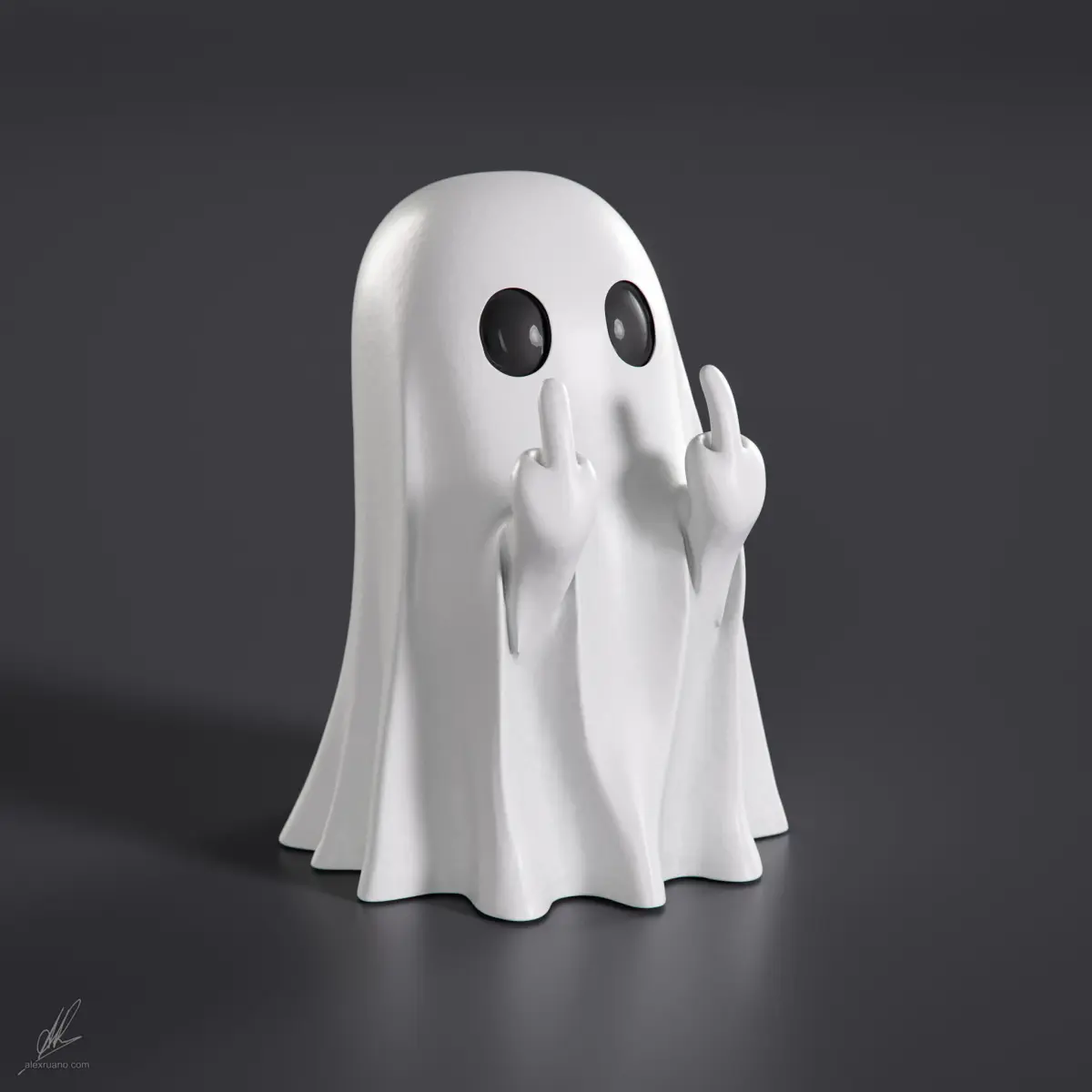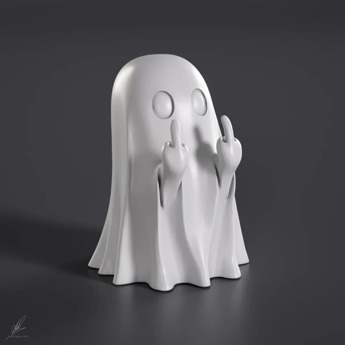 Rude Ghost figurine showing middle finger. Size aprox: 6x6x8cm (aprox). Corona Materials. Scene, & lighting setup not included. Plugins needed: Bercon Noise (FREE).