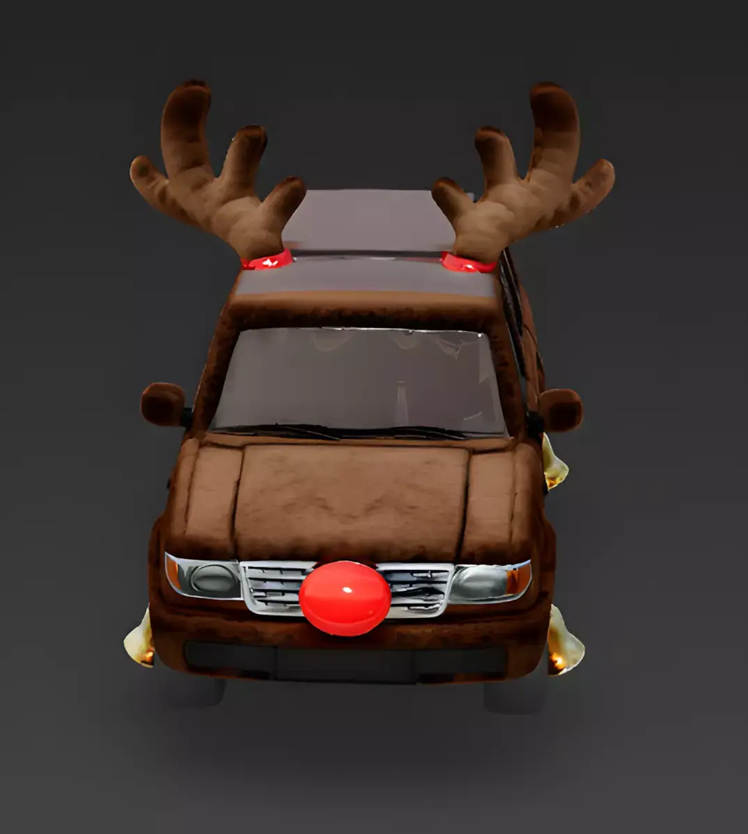 The Overall Concept This asset is a whimsical holiday transformation of a standard family SUV. Inspired by the famous red-nosed reindeer, this vehicle brings humor and festive spirit to any racing game or winter city map.