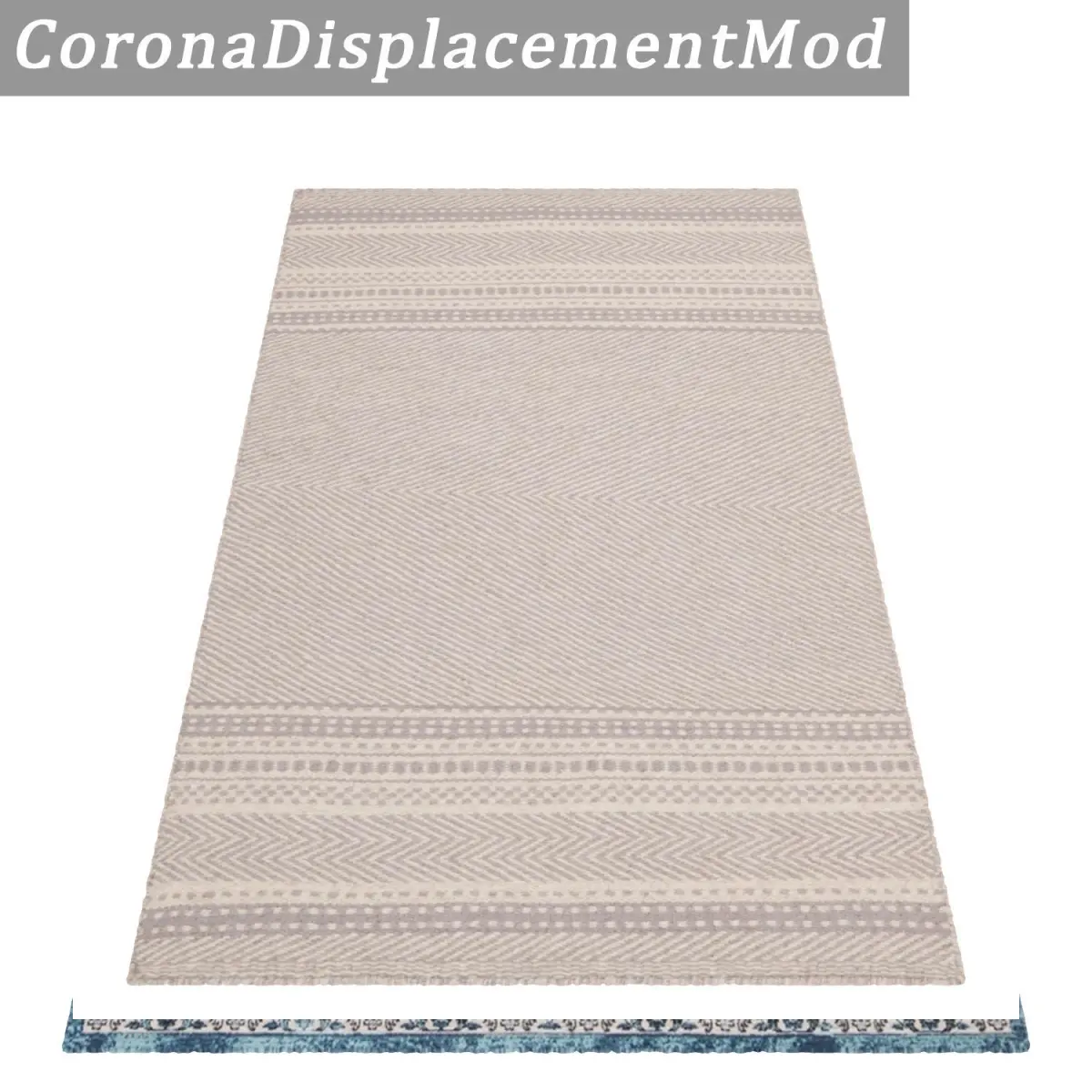 For each rug in the scene there are 3 options:-1. Rug created with VRayFur (for close-up renders)-2. Rug with VRayDisplacementMod-3. Rug with CoronaDisplacementMod