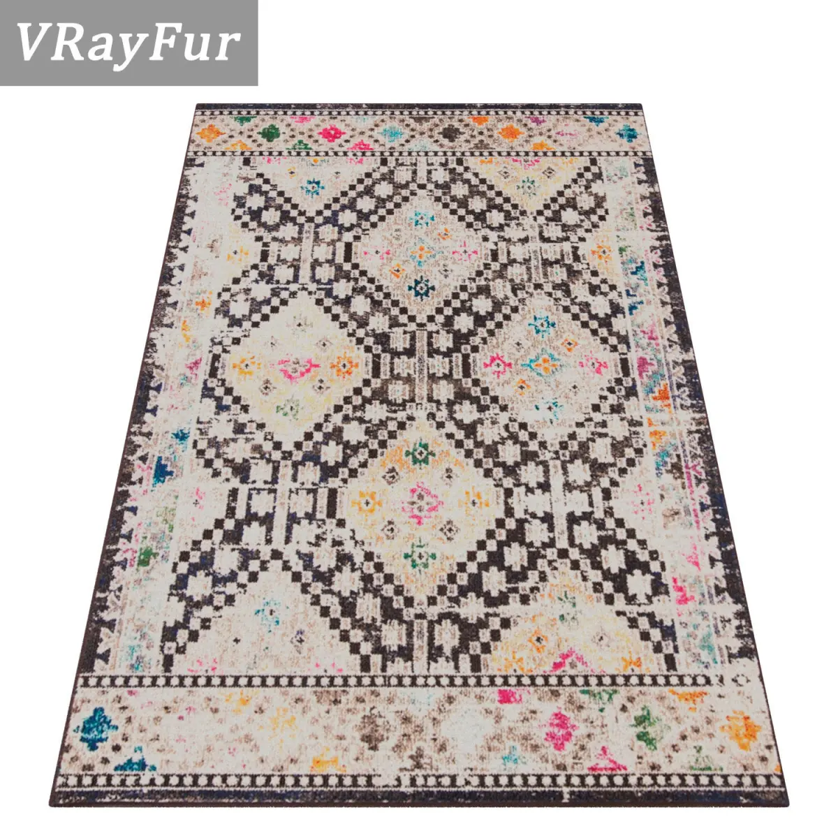 For each rug in the scene there are 3 options:-1. Rug created with VRayFur (for close-up renders)-2. Rug with VRayDisplacementMod-3. Rug with CoronaDisplacementMod