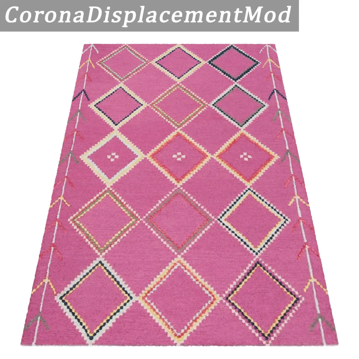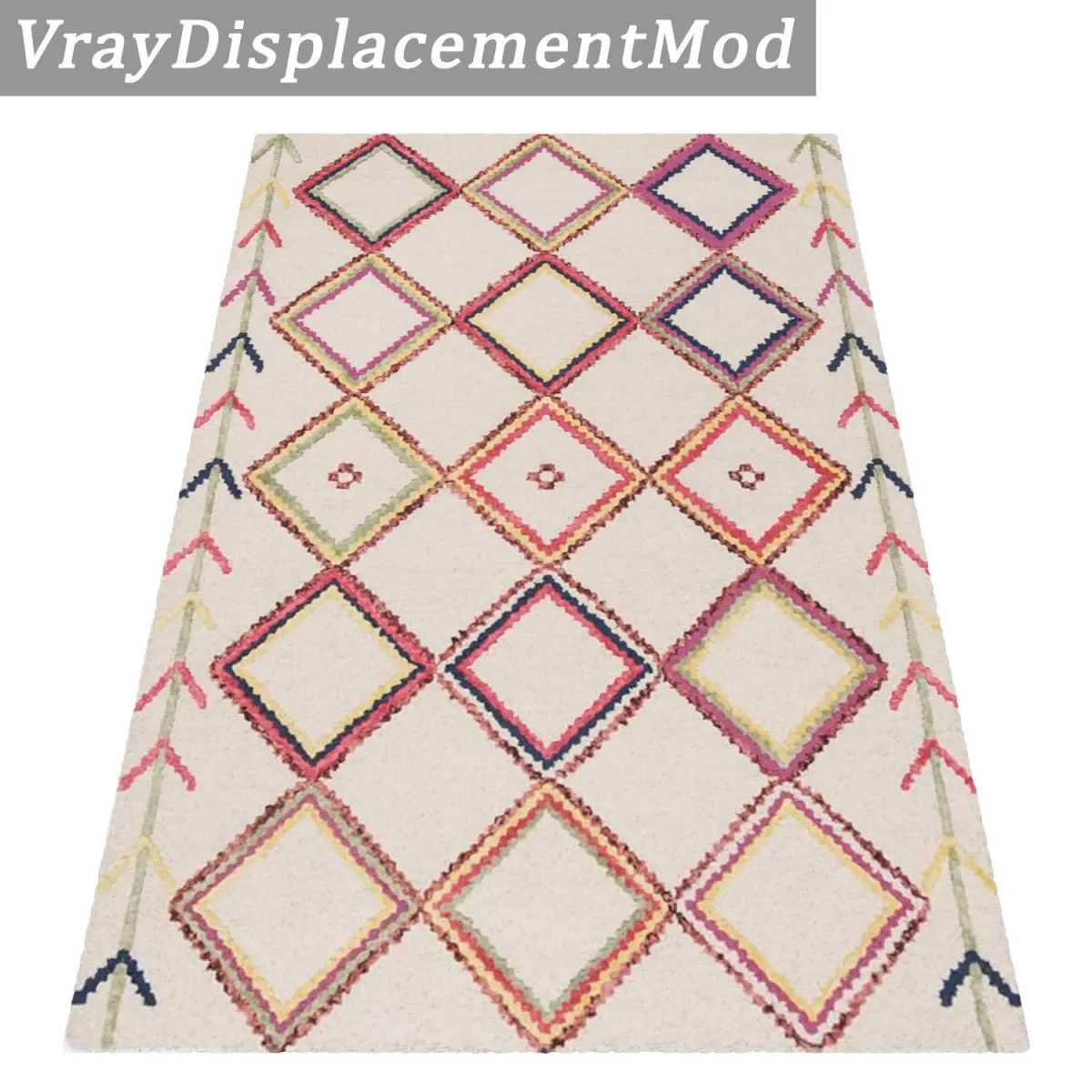 For each rug in the scene there are 3 options:-1. Rug created with VRayFur (for close-up renders)-2. Rug with VRayDisplacementMod-3. Rug with CoronaDisplacementMod