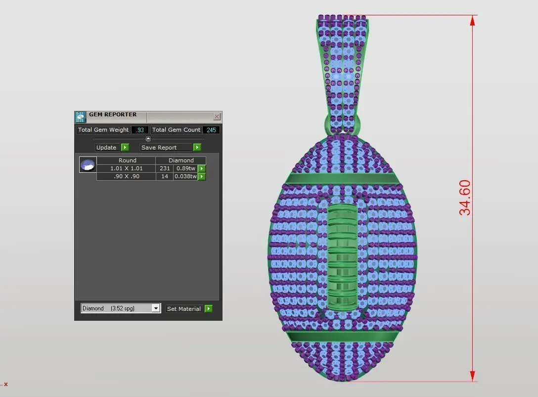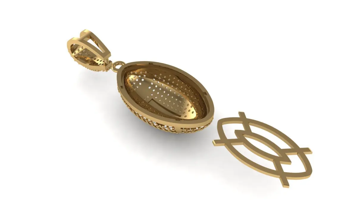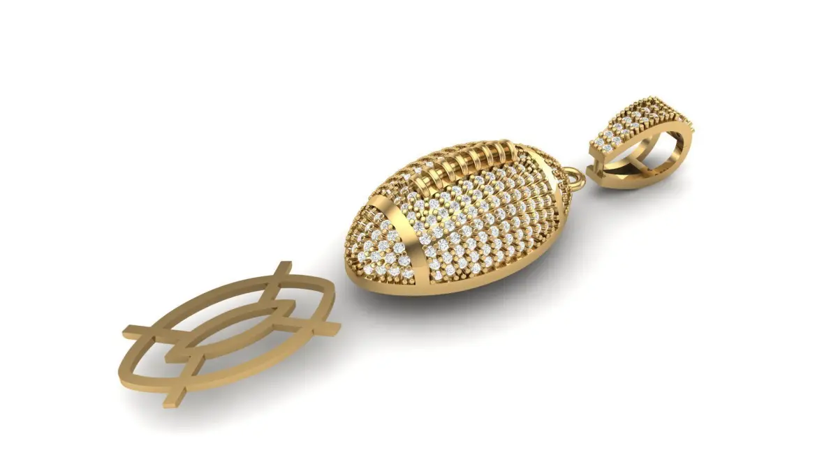Rugby pendant 3d print model. Weight - Silver .925 - 6.31g