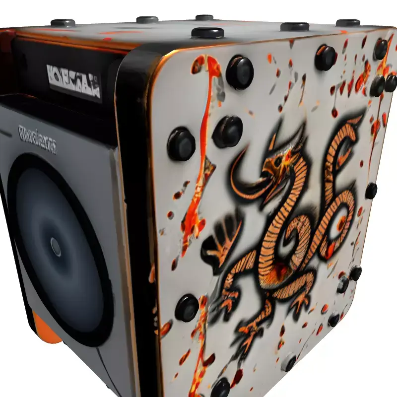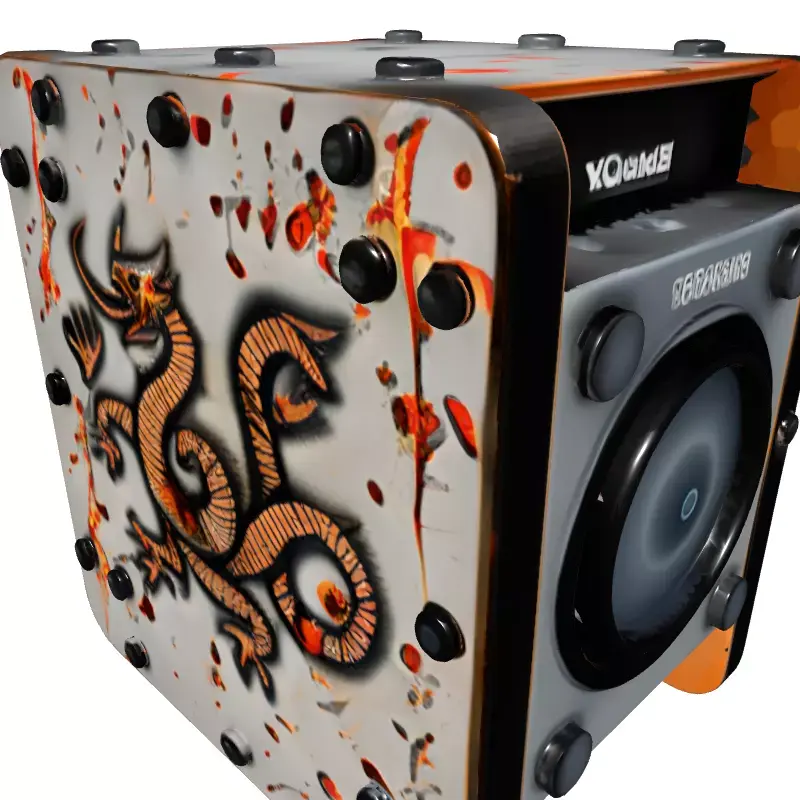 This detailed 3D model presents a rugged, industrial-style audio speaker, perfect for a variety of digital projects. Its robust construction features distressed metal panels, securely fastened with numerous prominent screws, giving it a durable and utilitarian appearance. A striking graffiti-style dragon motif adorns one side, adding a unique character and a touch of fantasy or street art to the design. The model incorporates a visible speaker unit with distinct POWER AUDIO branding, enhancing its realism and functionality. This versatile asset is ideal for integration into game development environments, providing a realistic prop for sci-fi, post-apocalyptic, or steampunk settings. It also excels in architectural visualization for industrial spaces, augmented reality (AR) applications, virtual reality (VR) experiences, and compelling digital art compositions. The model boasts clean topology and is meticulously UV unwrapped, ensuring efficient texture application. It is optimized for real-time applications, making it suitable for modern game engines, yet its high-fidelity details also make it perfect for static renderings and high-quality cinematics. Supported file formats include GLB, OBJ, STL, ABC, DAE, FBX, USD, and PLY, ensuring broad compatibility across various 3D software and platforms. PBR textures are included to deliver realistic surface properties and intricate detailing.