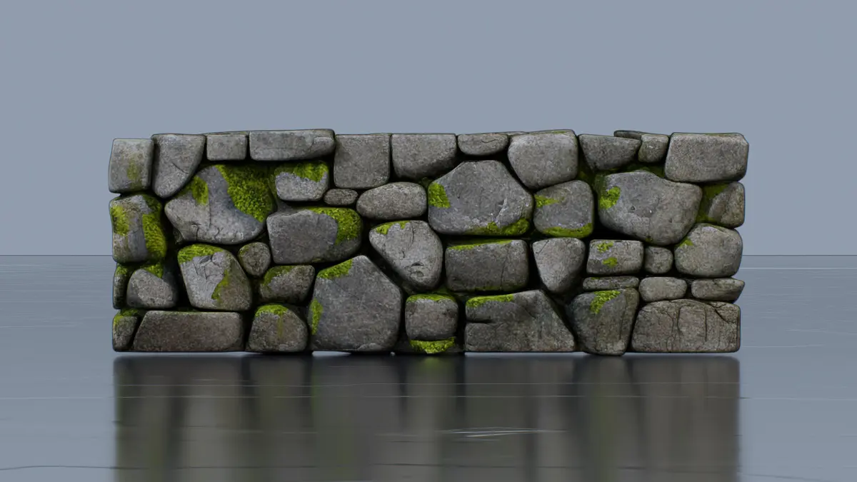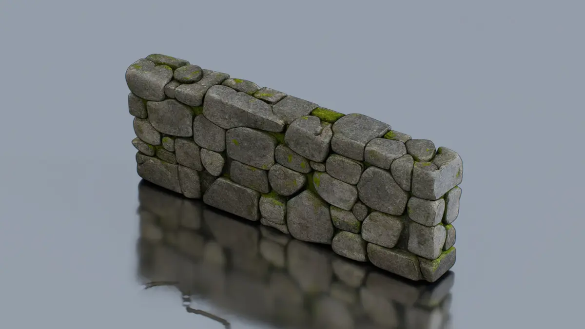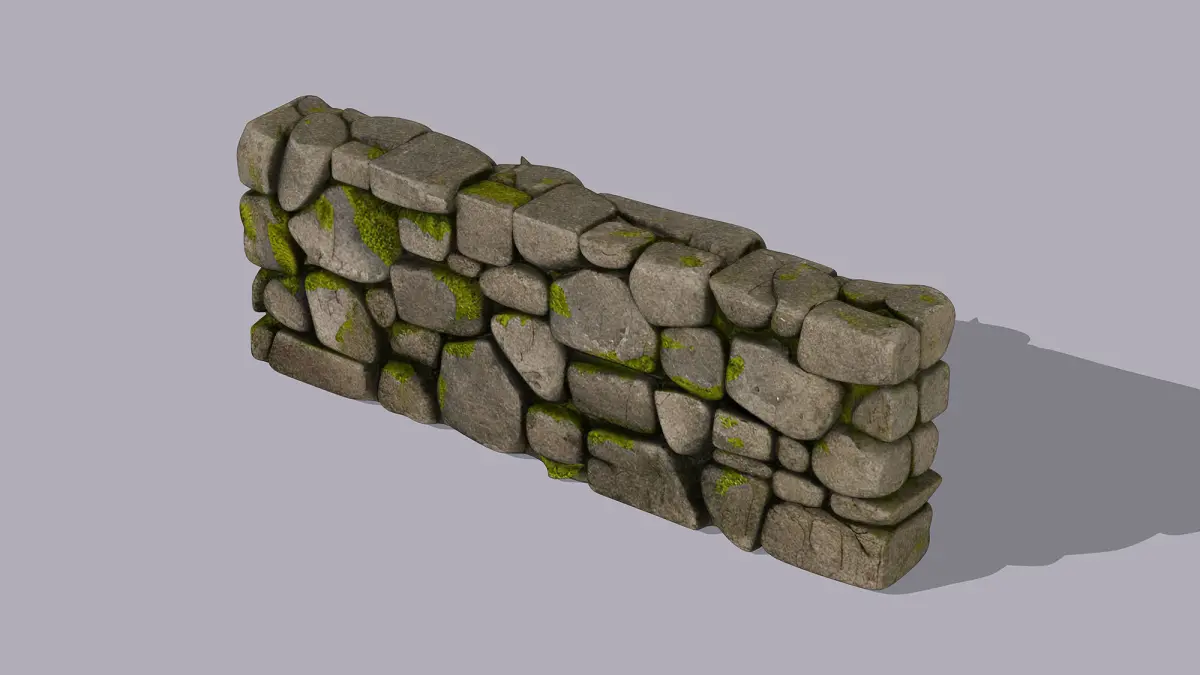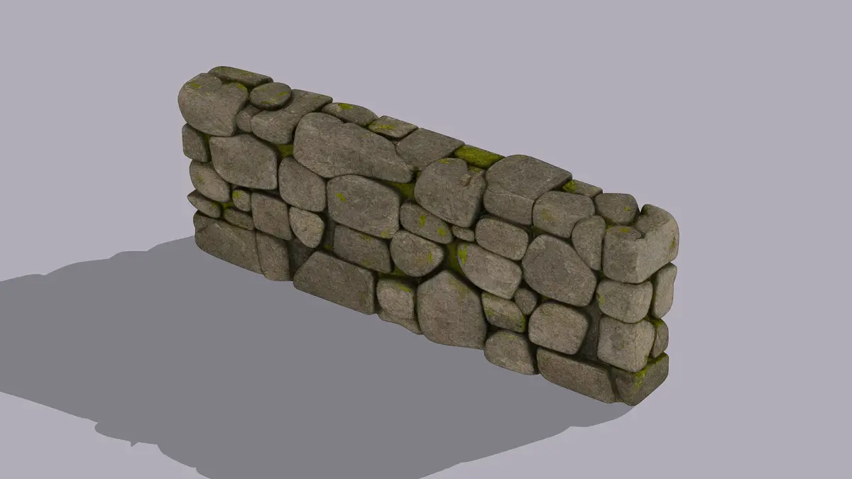 This 3D model features a rugged stone wall, textured with moss and weathered stones, capturing the essence of an ancient boundary or garden divider. Its simple yet detailed design makes it perfect for use in historical games, virtual landscapes, or architectural renderings, evoking a sense of timeless durability.