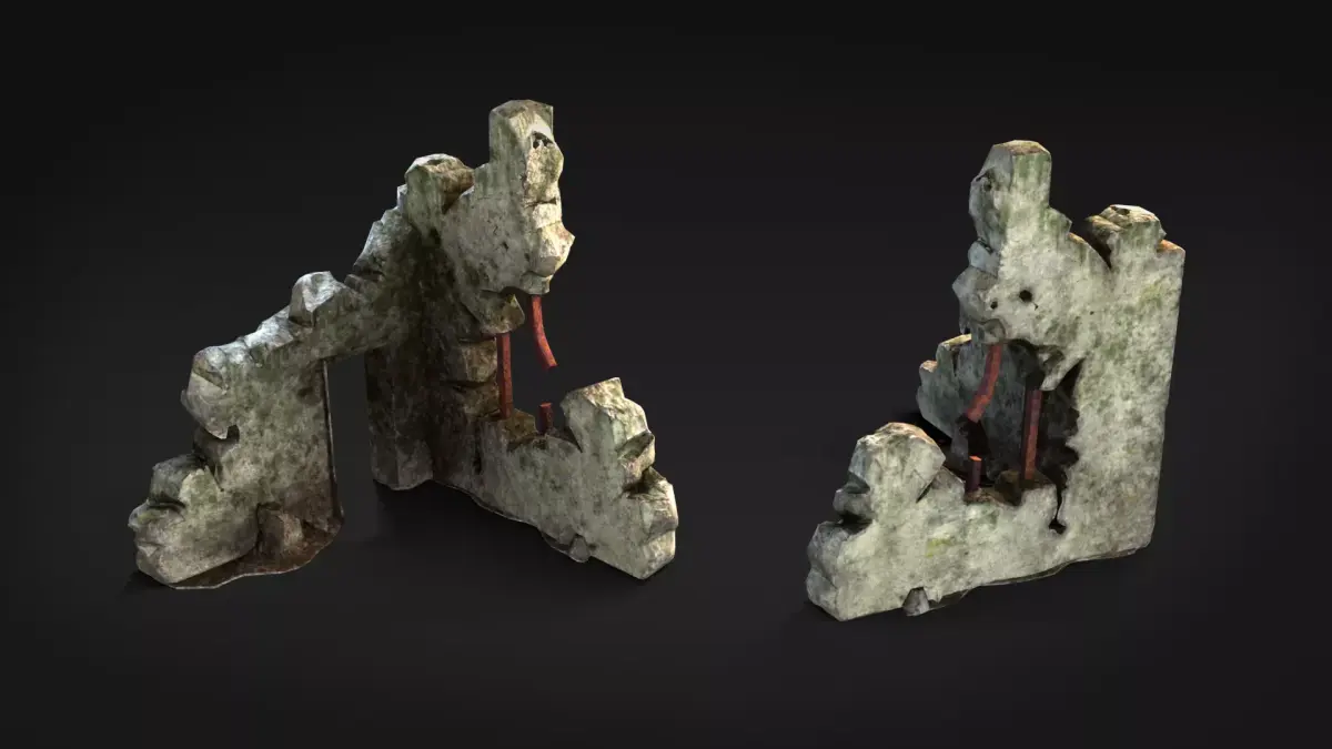 Usage:Ideal for game level design (FPS, survival, RPG, strategy), cinematics and cutscenes, environment concepting and matte painting, kitbashing ruined architecture and destroyed cityscapes.Use pieces separately or combine them to build large collapsed structures, fortified ruins, or broken facades.