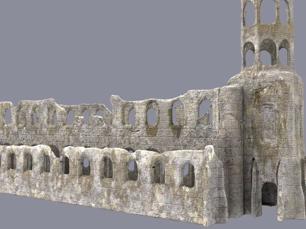 The model comes with a 4096*4096 normal map to refine the global geometry, and a 4096*4096 set of normal map/color map/displacement map used in cubic projection with a 50m*50m scale for the stonewalls details.