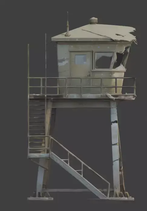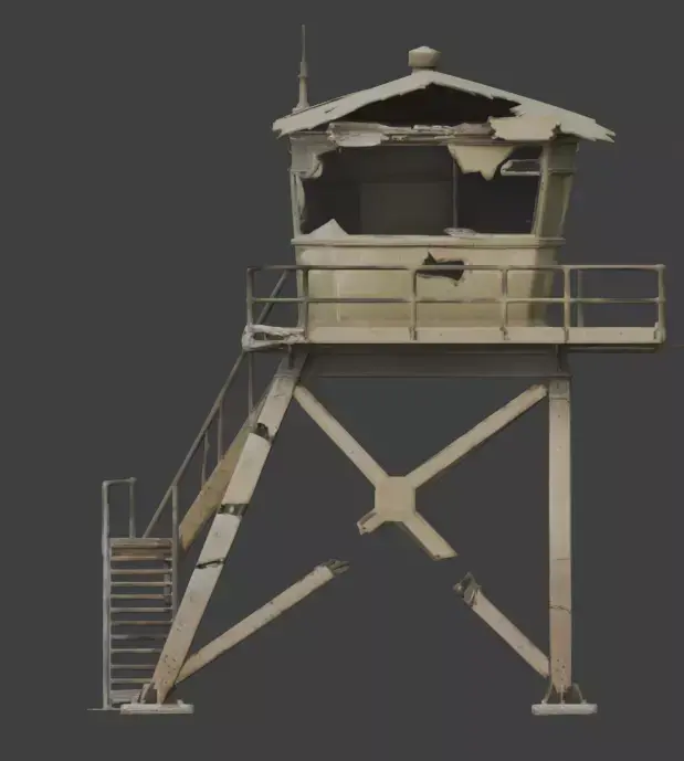 TagsWatchtower, Military, Destroyed, 3DModel, ObservationPost, BattleDamaged, Abandoned, Ruined, GameAsset, Realistic, PBR, GuardTower, WarZone, PostApocalyptic, Scenery, Weathered, Tactical, Structure, BrokenLadder, Outpost