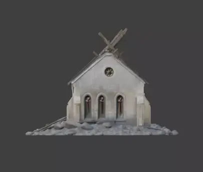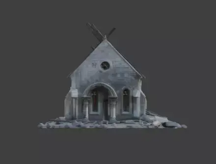 Tagschurch, ruins, stone, building, chapel, abandoned, destroyed, debris, architecture, post-apocalyptic, rubble, masonry, old, historical, fantasy, 3d model, environment asset, wasteland