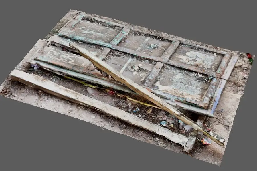 Ruined unhinged door inside the building. The door in a state of disrepair kept on the floor of the building. This is a 3d photo scanned or photo geometry model scanned using a Lidar scanner. You can use this model in your animation, VFX or game.For More scan 3d models you can check our account.