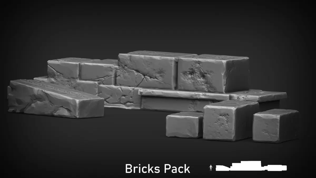 Hight poly models to build your own environment -7 Columns -5 Bricks -3 Rocks