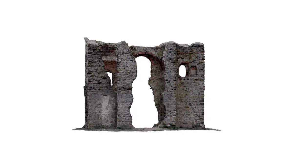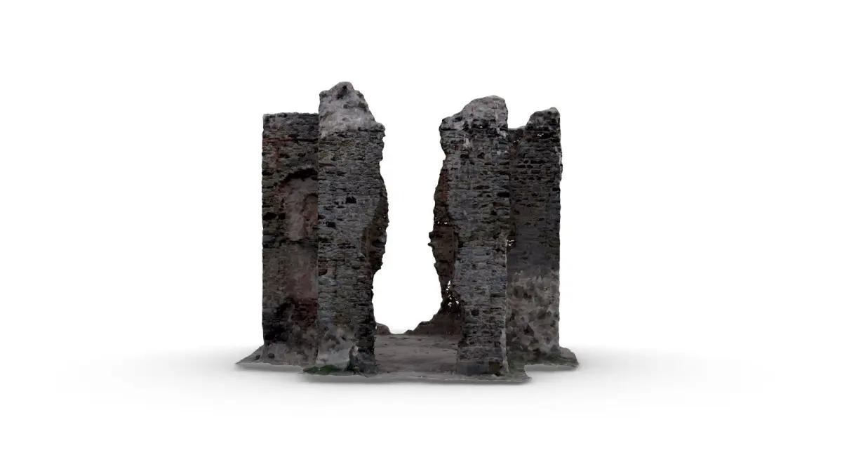 Photogrametry scan of Ruins of the Chapel Exaltation Crisis near Prague Czech Republic. Scanned with DJI Air 2s. This model is up to real life scale. The building is 12m long.