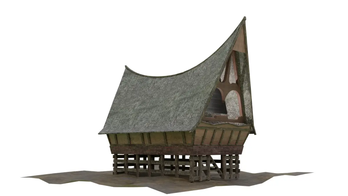 The bolon house (in Batak Toba language: Ruma Bolon) is a traditional house typical of the Batak tribe in North Sumatra, Indonesia. The bolon house is characterized by a stage shape with a curved and pointed roof, and walls and floors made of wood. This house not only functions as a residence, but also as a place for family meetings, customary deliberations, and religious ceremonies.