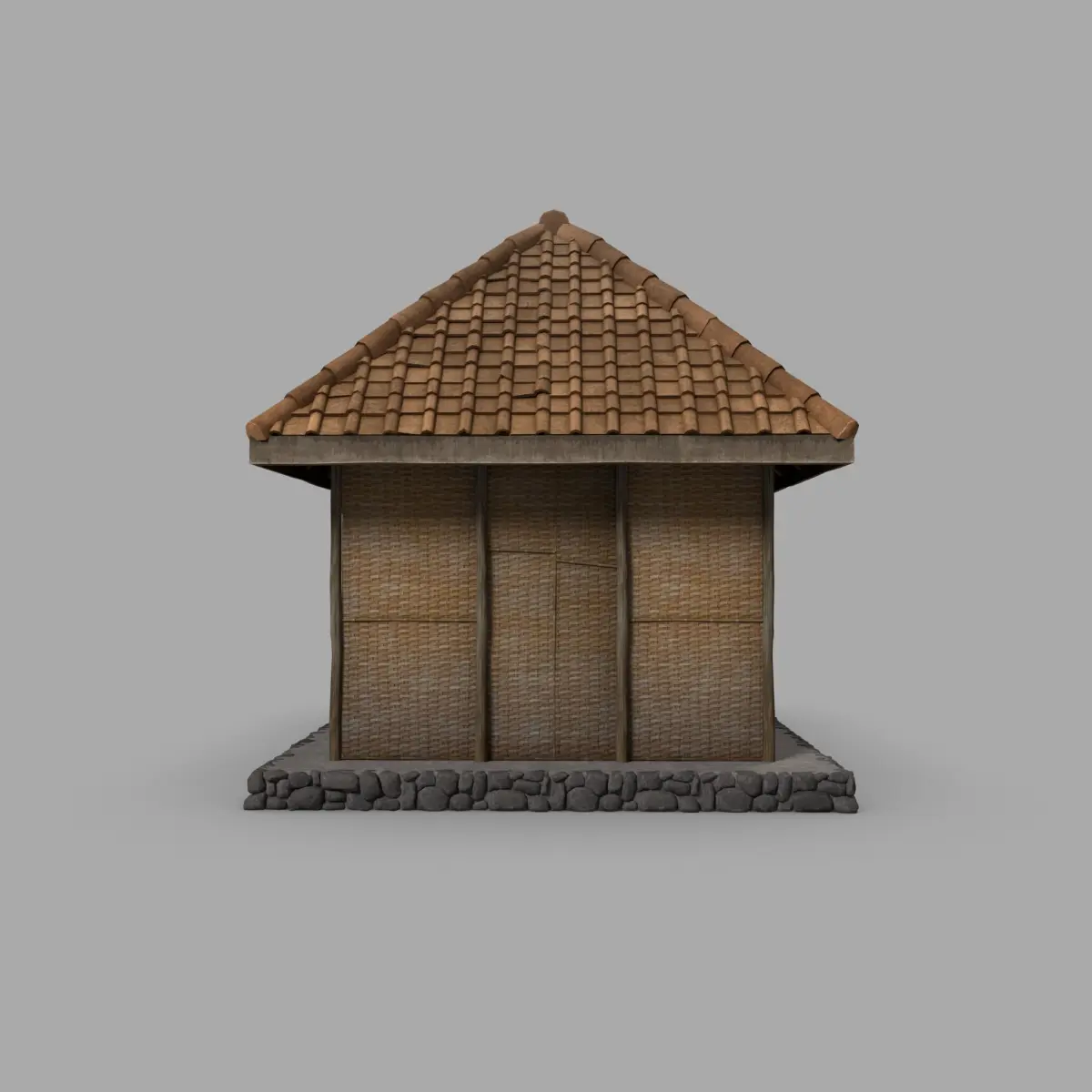 "A bamboo-structured version of the Balinese rumah gubuk, reflecting sustainable and natural design. Great for eco-villages, countryside, or tropical stories.