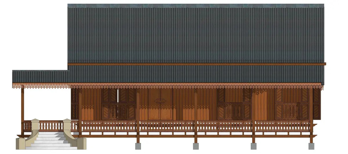 this 3d model is a traditional Malay house that can be found mainly in Malacca and any parts near the region of Malaysia. this house type is a much recent design. the roof is a hip roof which is one of the identity of malay houses. this house is like an extention to the rumah tiang 20. every malay houses will start built in a grid form. starting with 6 poles or tiang 6 to 12 poles ,tiang 12 and when the family is getting bigger the house will expand and can be up to 24 poles or tiang 24 .it is usually built for middle class family and can be seen across the Malaysia peninsular. the structure is fully using a solid wood specifically the Cengal timber while the other parts use meranti timber. the 3d model was made and create in sketchup and rendered using enscape version 3.1. the outcome may vary depends on the software you are using. it is scaled 1:1 following the real dimension.