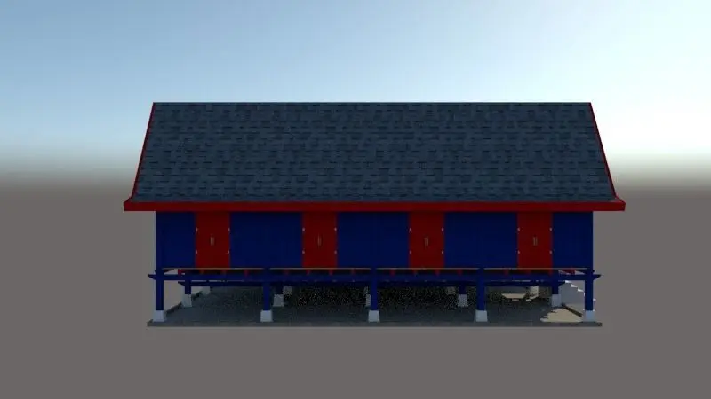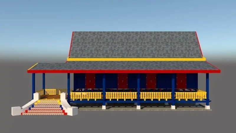 THE MELAKA HOUSE HAS THREE TYPES, THE SMALLEST OF WHICH IS CALLED BUJANG HOUSE WHICH IS THE STRUCTURE OF THE BUILDING CONSISTS OF SIX MAIN PILLARS.