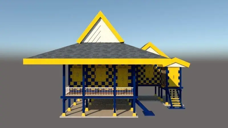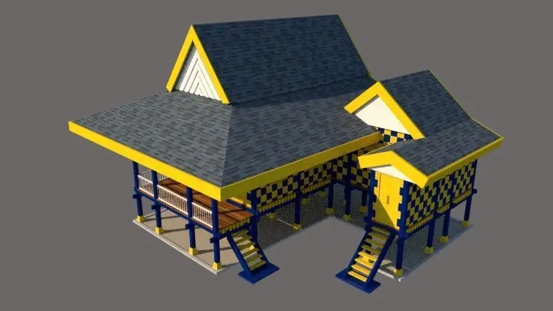 THE SCREENPLAY IS PART OF ITS ROOF WALL COVERING, WHICH IS MADE OF SLOPING SLOPPINESS. THE PERLIS LONGHOUSE IS MADE OF CENGAL WOOD AND SEA RESIN, THE WALLS ARE MADE OF LATRINE, THE ROOF IS MADE OF RUMBIA OR NIPAH AND SOMETIMES USES GENTING SENGGORA.
