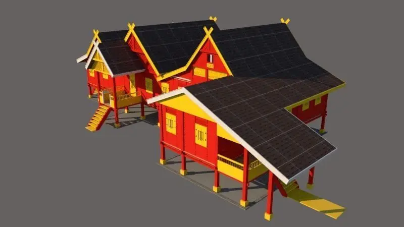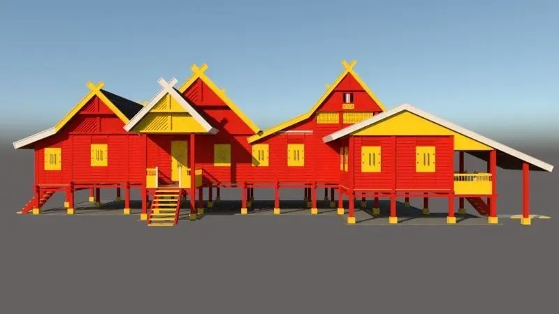 THIS HOUSE IS A LONG ROOF DESIGN FOUND IN THE STATE OF SELANGOR DARUL EHSAN. IT CONTAINS A RATHER LARGE AND PROTRUDING COMBINATION OF PORCH AND PORCH. ALMOST ALL LONG ROOF DESIGNS ARE ELONGATED BACKWARDS WHEN ENLARGED ACCORDING TO THE CURRENT NEEDS OF THE HOMEOWNER. THE HOUSE DOES NOT HAVE A MULTI-STOREY ROOF LIKE THE NEGERI SEMBILAN HOUSE, BUT HAS A LARGE ROOF WHICH IS QUITE STEEP IN THE MOTHER'S HOUSE. AS IS THE CUSTOM OF THIS DESIGN, THE PURPOSE OF THIS LARGE ROOF (SAIL SPREAD) IS TO TRAP THE WIND SO THAT THE ROOF SPACE CAN BE VENTILATED FOR THE PURPOSE OF LOWERING THE TEMPERATURE INSIDE.THUS, THE LARGER THE MOTHER'S HOUSE, THE BIGGER THE ROOF WILL BE. THE EXTERIOR DESIGN OF THE HOUSE HAS A SIMPLE ENGRAVING AT THE TOP OF THE WINDOW. THE WINDOW HAS A SHORT TREAD LOCATED ABOVE THE LOWER BAR OF THE WINDOW. THE WINDOWS OF THIS HOUSE ARE LOCATED QUITE LOW FROM THE FLOOR LEVEL. THE MOTHER'S HOUSE WAS RAISED AGAINST THE KITCHEN, PORCH, HOUSEHOLD AND PORCH. THE HEIGHT OF THE ROOF STRUCTURE MAKES THE HOUSE LOOK SPACIOUS AND RELIEVED WHEN INSIDE. IT IS ALSO INTENDED FOR A SMOOTHER AND MORE COMFORTABLE AIR CONDUCTION PROCESS. THE HOUSE HAS NO HOSES, COMPARED TO OTHER LARGE ROOF HOUSES.