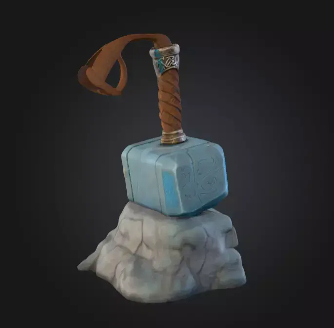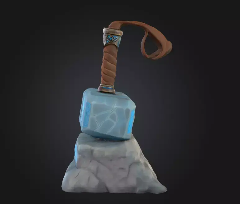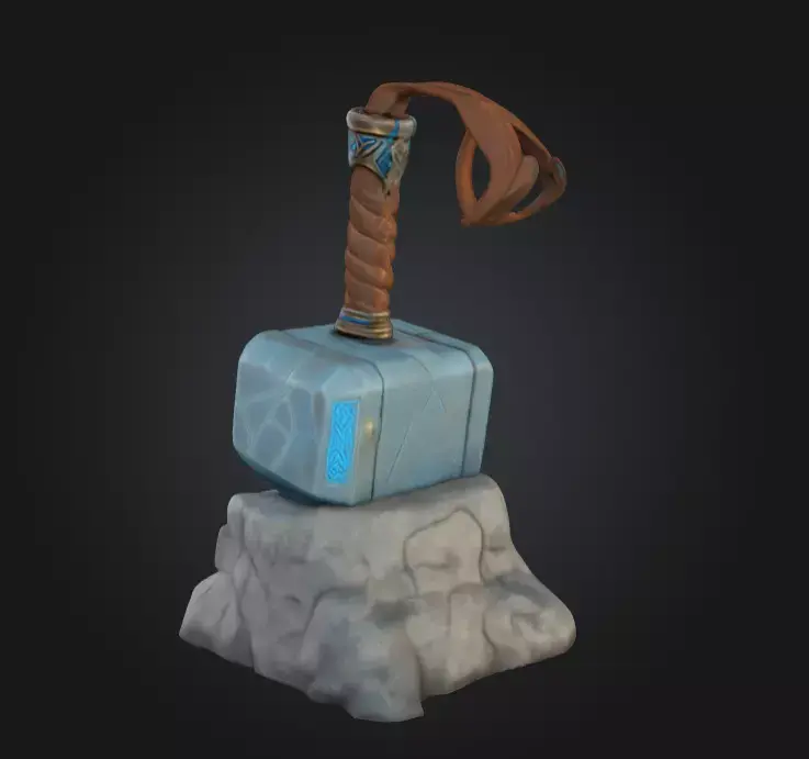 With PBR textures (diffuse, normal, roughness, emissive) included, this model is tailored for realistic and stylized rendering alike. The glowing runes are optimized for emissive detail, making the hammer a natural focal point in fantasy or mythological scenes. The model is game-ready, lightweight enough for real-time rendering, yet detailed enough for close-up cinematic shots.