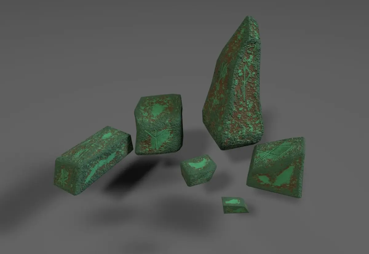 here's six fine stones with runes and a moth. I added two versions of this project. first is stones-untitled3, where you can find LOWPOLY game model, and second variation - stones-untitled3-subdivided, where you can find beautiful geometry, but with more polygons. which one to use - your choice! files .zpr has only one version and compartible with every version. the difference between two versions you can judge by preview. you may find 2 versions of archieves for 3 different formats of textures, they are named so you will not be lost. )