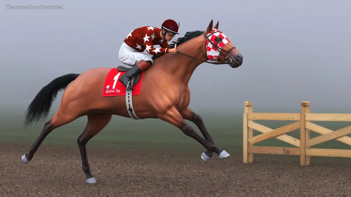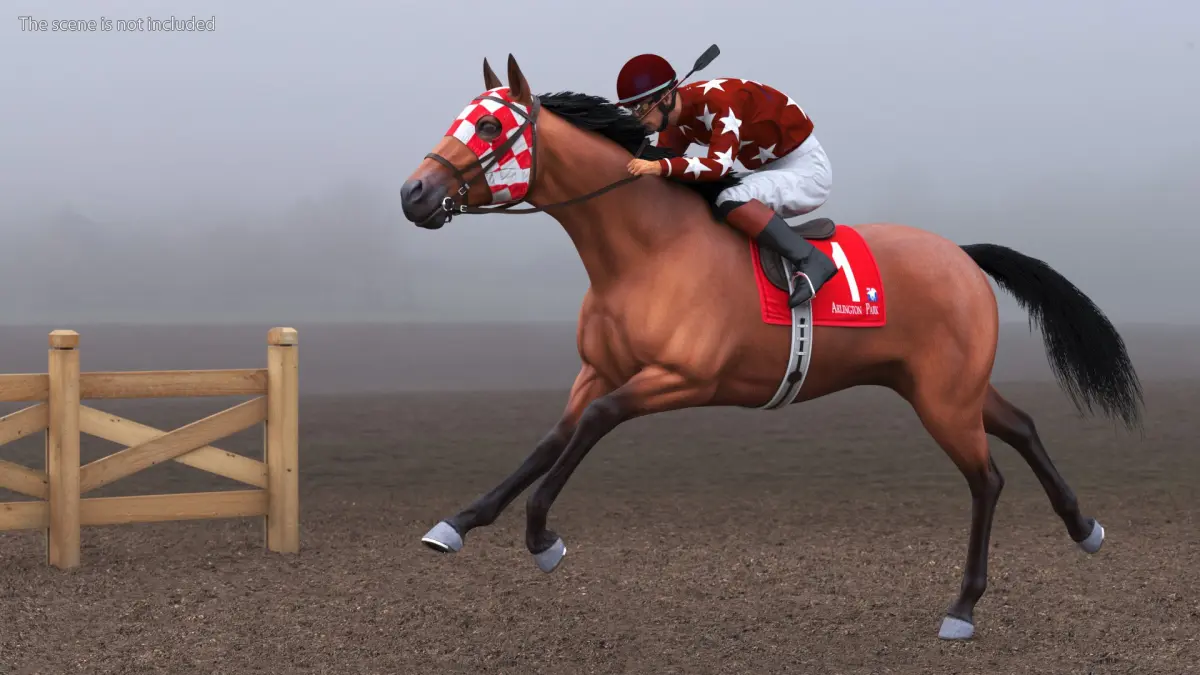 Running Bay Racing Horse with Jokey is a high quality, photo real 3d model that will enhance detail and realism to any of your rendering projects. The model has a fully textured, detailed design that allows for close-up renders, and was originally modeled in 3ds Max 2020 and rendered with V-Ray. Renders have no postprocessing!