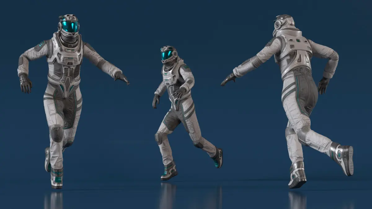Running Futuristic Astronaut with Visor is a high quality, photo real 3d model that will enhance detail and realism to any of your rendering projects. The model has a fully textured, detailed design that allows for close-up renders, and was originally modeled in 3ds Max 2020 and rendered with V-Ray. Renders have no postprocessing!