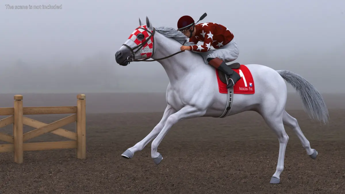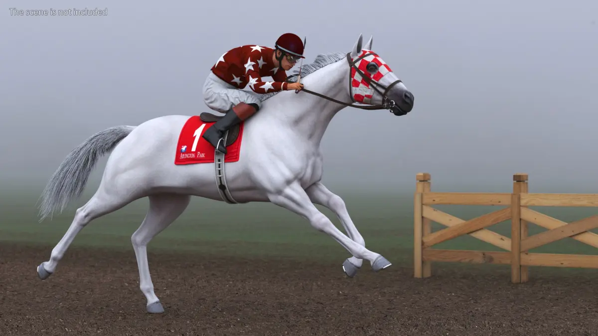 Running White Racing Horse with Jokey is a high quality, photo real 3d model that will enhance detail and realism to any of your rendering projects. The model has a fully textured, detailed design that allows for close-up renders, and was originally modeled in 3ds Max 2020 and rendered with V-Ray. Renders have no postprocessing!