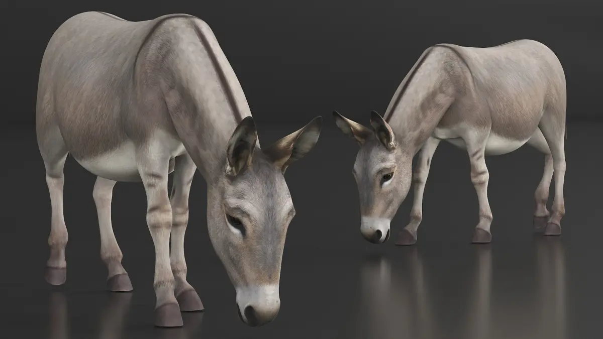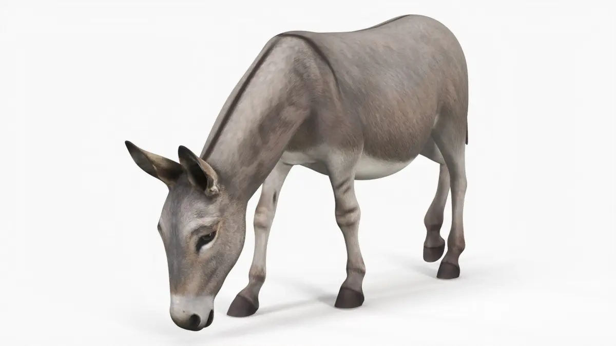 Rural Donkey Grazing Pose is a three-dimensional model of donkey, showcasing the animal in a lifelike manner, perfect for both educational and decorative purposes.