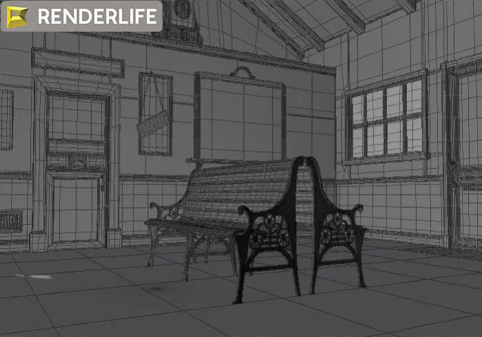 This is a stylized 3D asset featuring the interior of the Rural Train Station asset. It has been designed with old timey details in mind - cast iron benches, and a chalk departures/arrivals board. It's a great addition to any of your vintage travel scenes, especially when combined with the exterior, and some train assets.