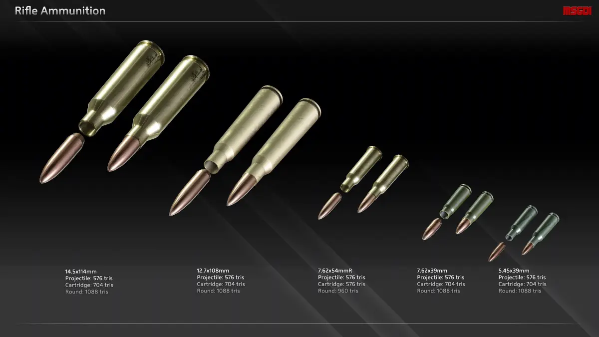 This pack contains the most common ammunition from Russia / Warsaw Pact countries. It can be used in FPS or bullet time games.
