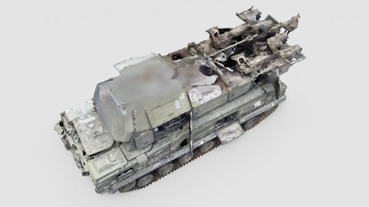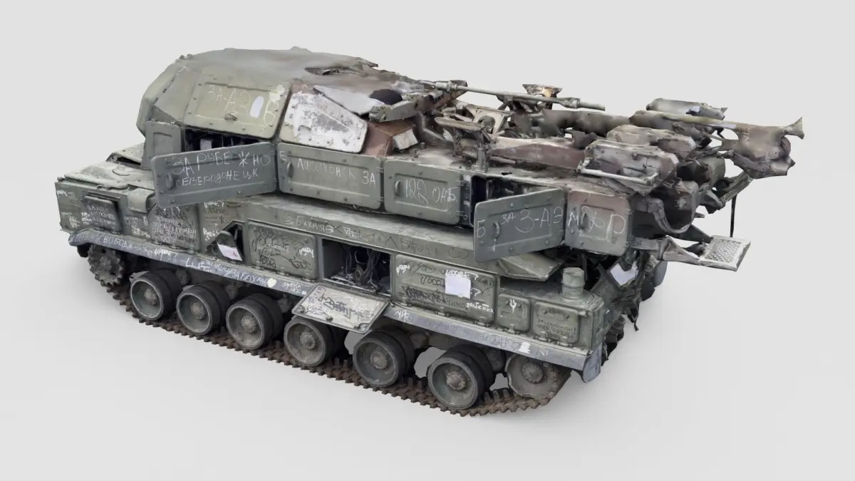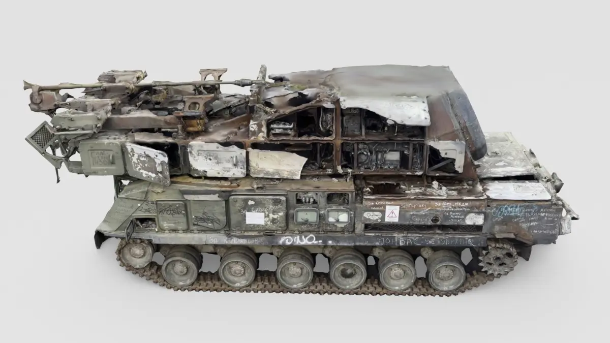 russian Buk missile system destroyed by Ukrainian army during russian occupation of Ukraine, 2022 war in Ukraine.
