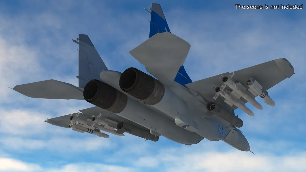 Russian Jet Fighter Mikoyan MiG 35 Aircraft Rigged has a detailed interior. Doors can be opened. The pose with open doors on the render images is an example and can be easily recreated using rig, it is not initially included into the product.