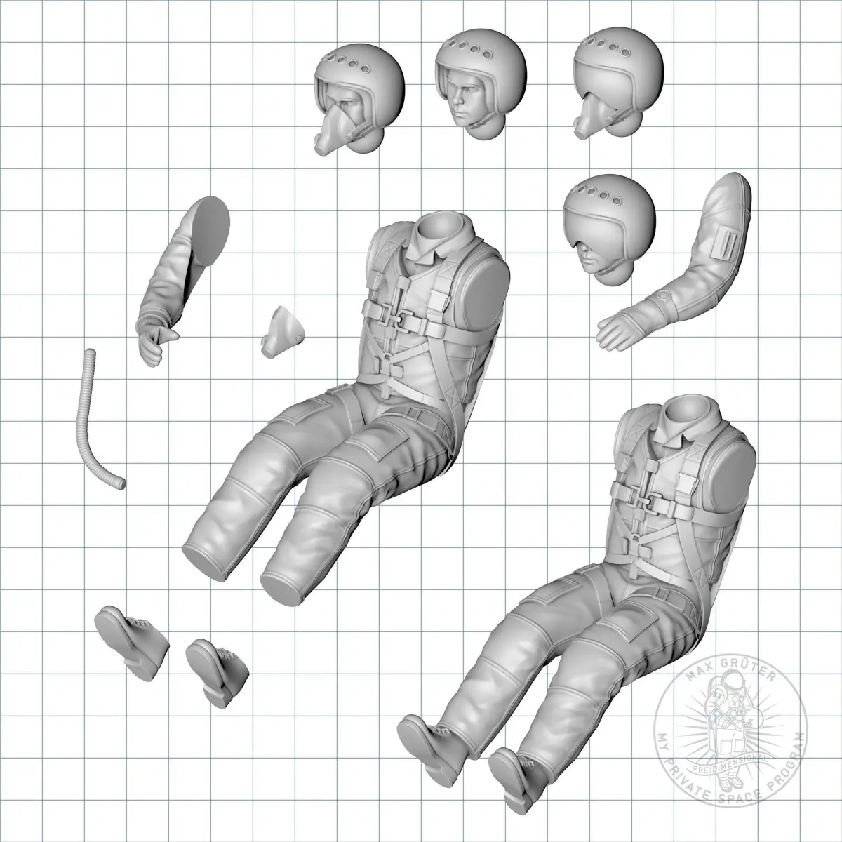 3D printable detailed figure of a russian jet pilot.