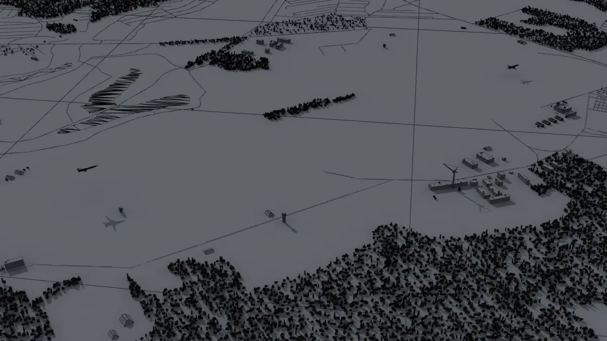 Russian Airbase, Military aerodrome 3D scene. Includes Tu22M bomber, hangers, buildings, forsts, roads, cars and more - everything shown in the renders. Lights and cameras are included in the 3DSMax version of the scene. Model built to real world scale - units are meters.