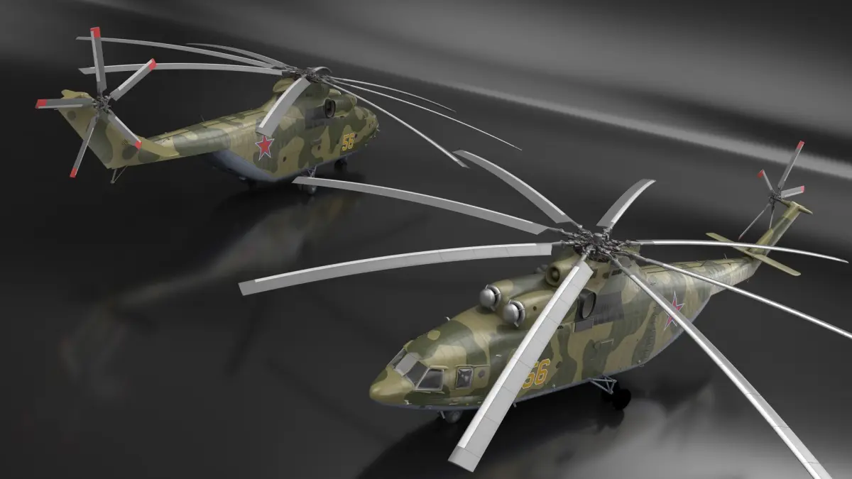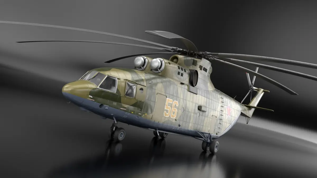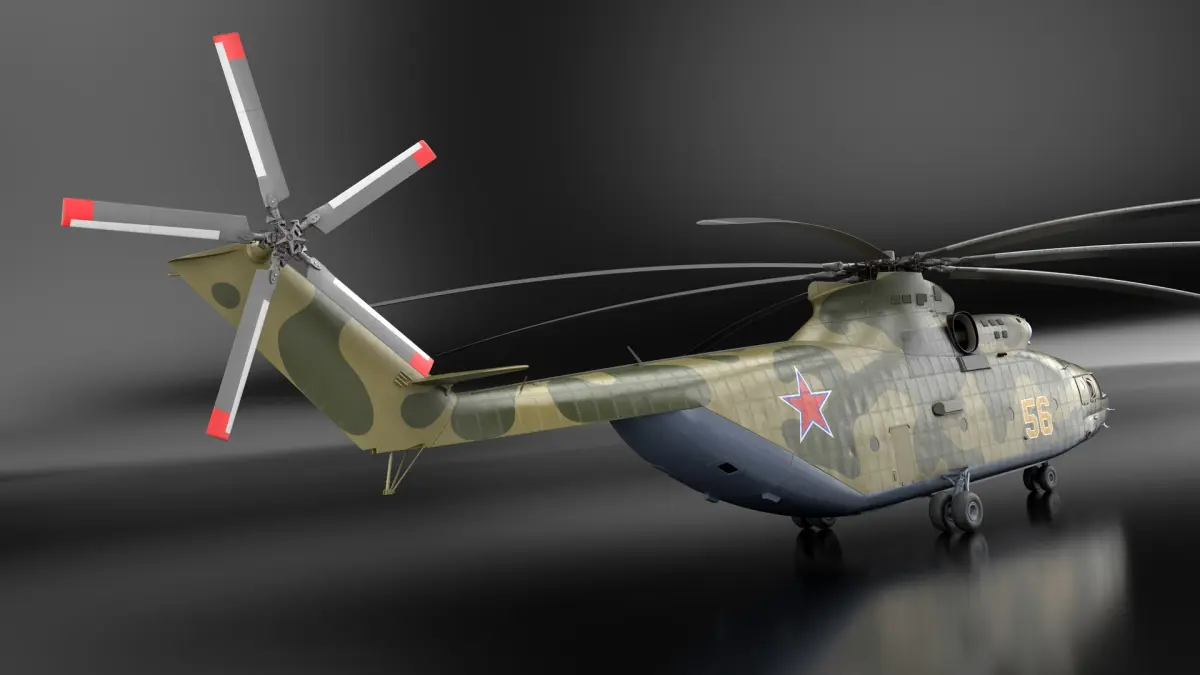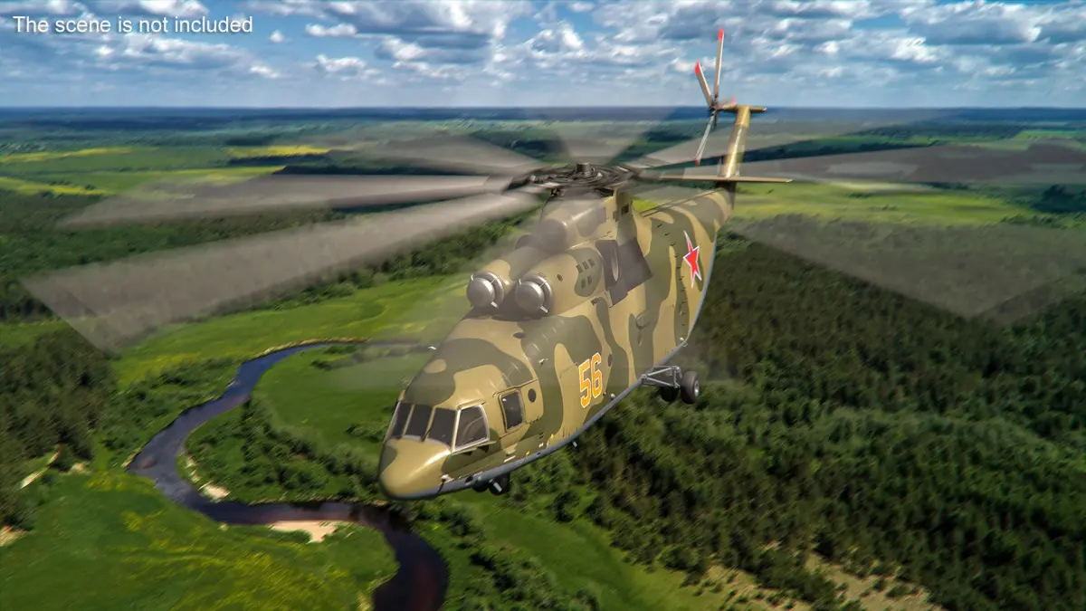 Russian Military Heavy Helicopter Mi-26 is a 3d model of a heavy transport helicopter, renowned for its lifting capability and used in both military and civilian applications.