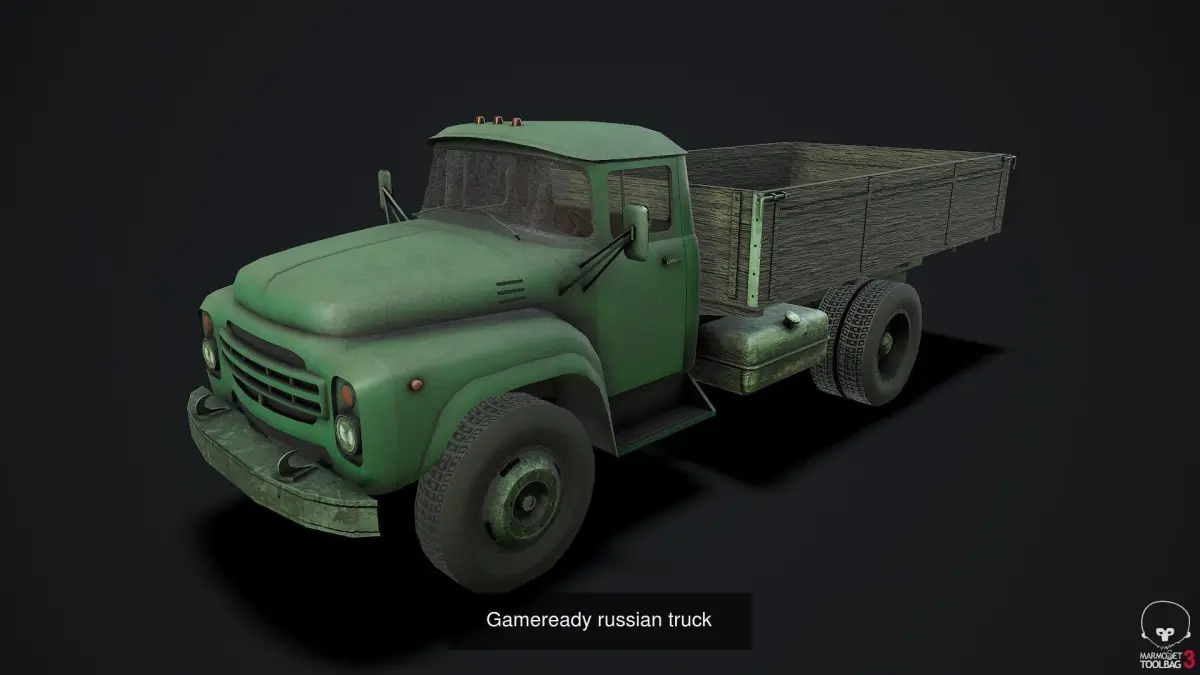 Gameready old russian military truck Low-poly 3D modelOld rissian truck 3D model compatible with game engines Unity, Unreal, Godot and others. 2 sets PBR textures (4K-MetRough).