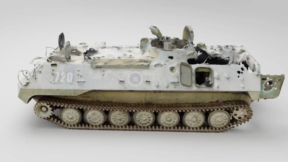 russian MT-LB literally multi-purpose towing vehicle destroyed by Ukrainian army during russian occupation of Ukraine, 2022 war in Ukraine. Please support Ukrainian artists.
