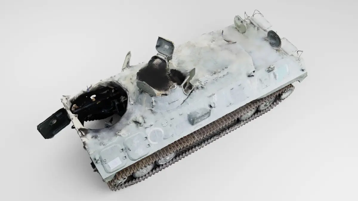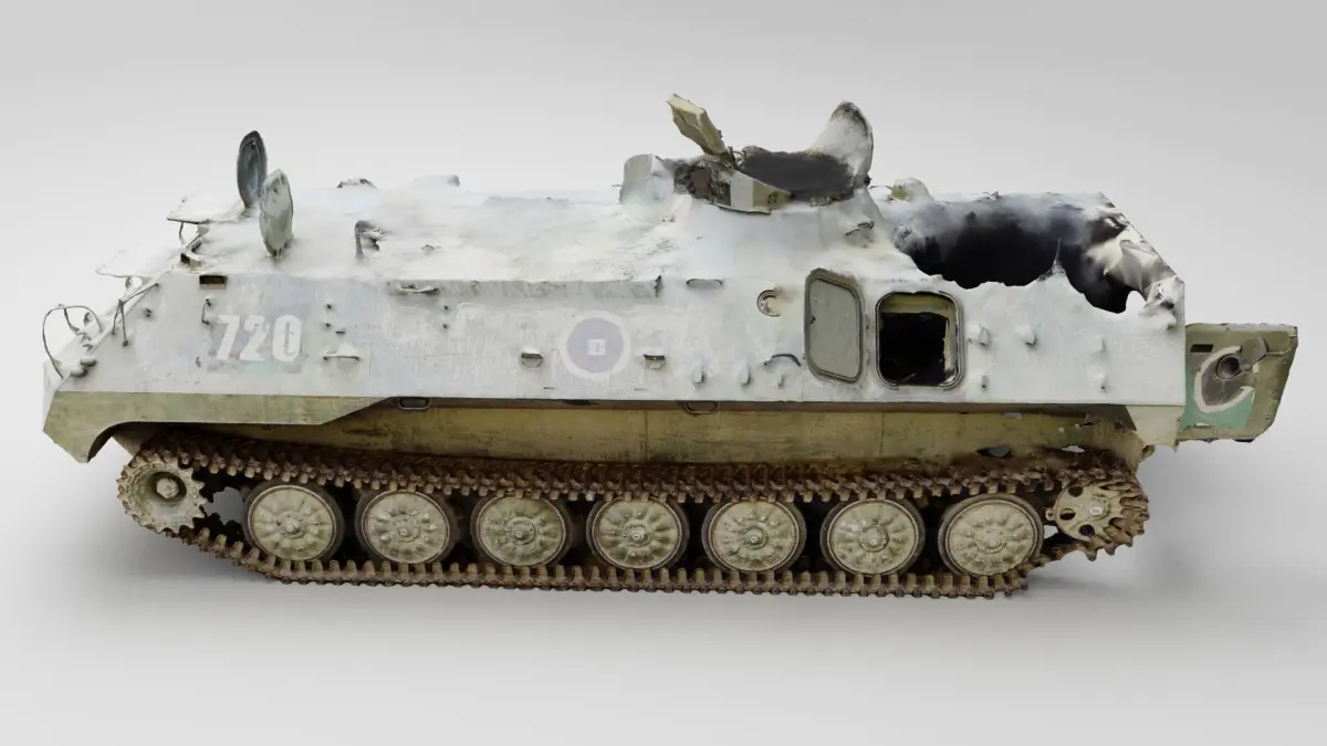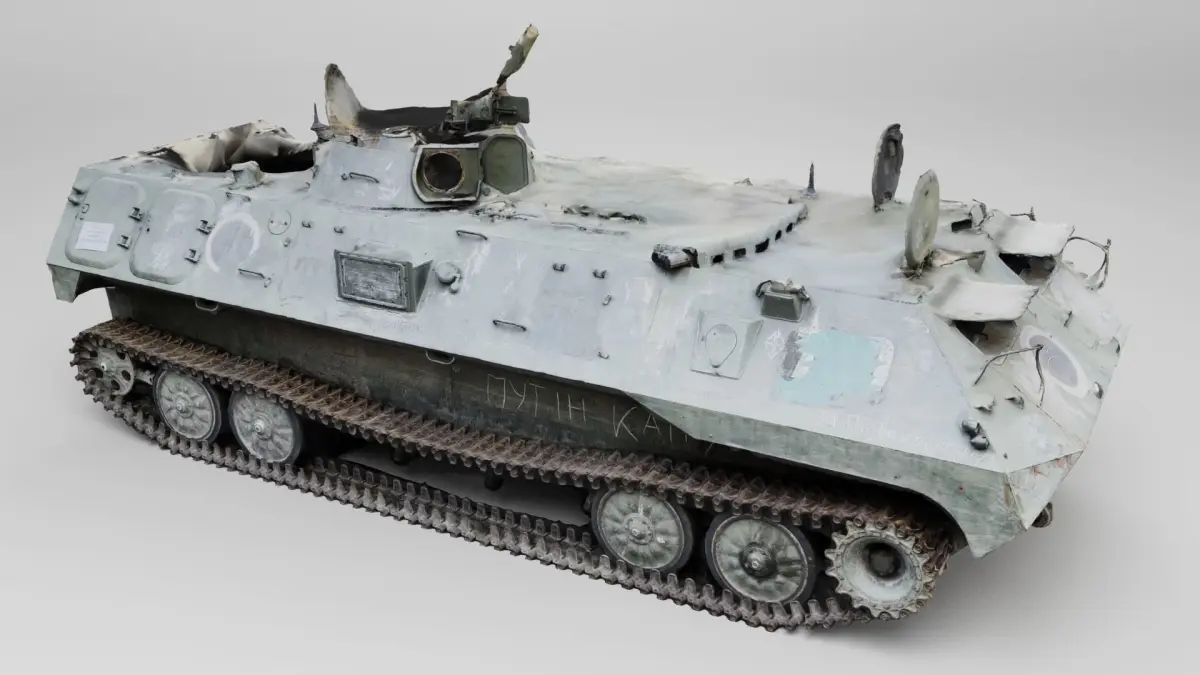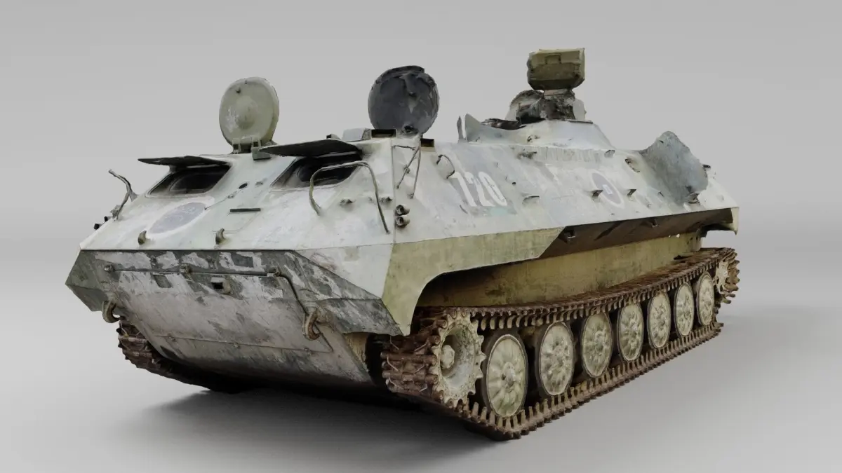 russian MT-LB literally multi-purpose towing vehicle destroyed by Ukrainian army during russian occupation of Ukraine, 2022 war in Ukraine. Please support Ukrainian artists.