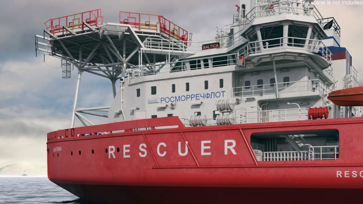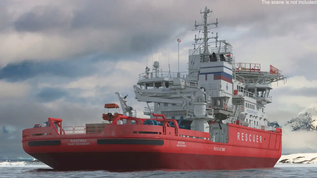 Russian Rescue Icebreaker with Helipad is a three-dimensional model of a maritime rescue vessel, meticulously designed for visualizations and simulations related to marine rescue operations.