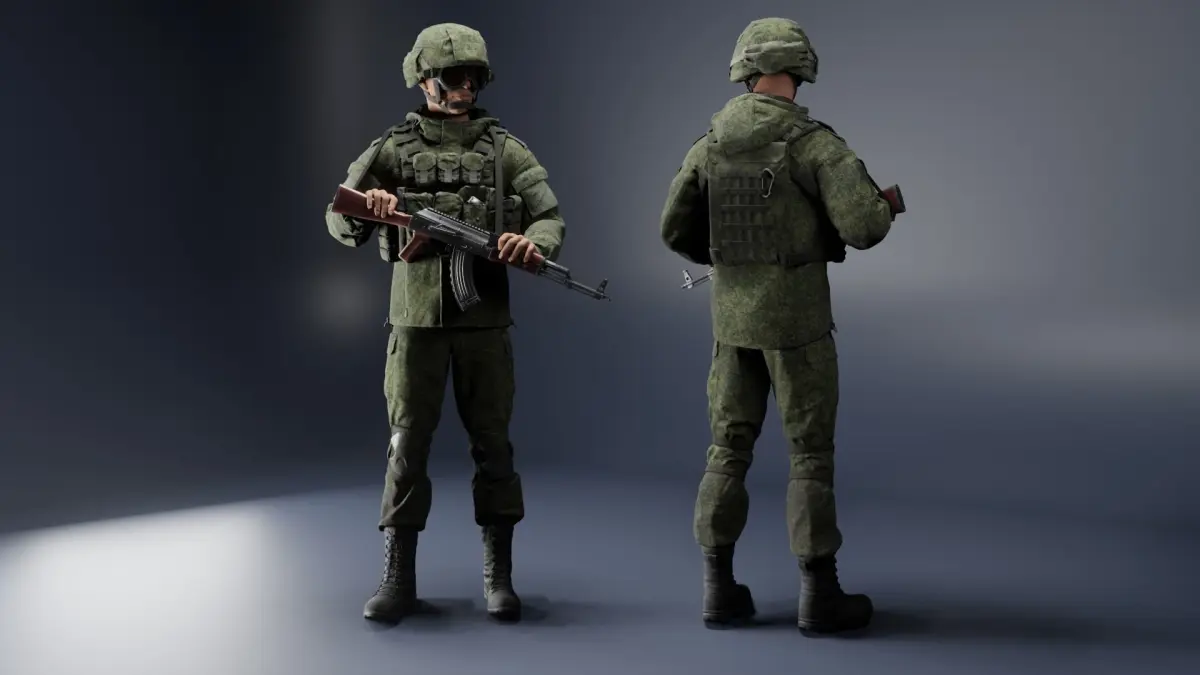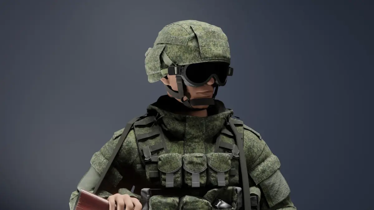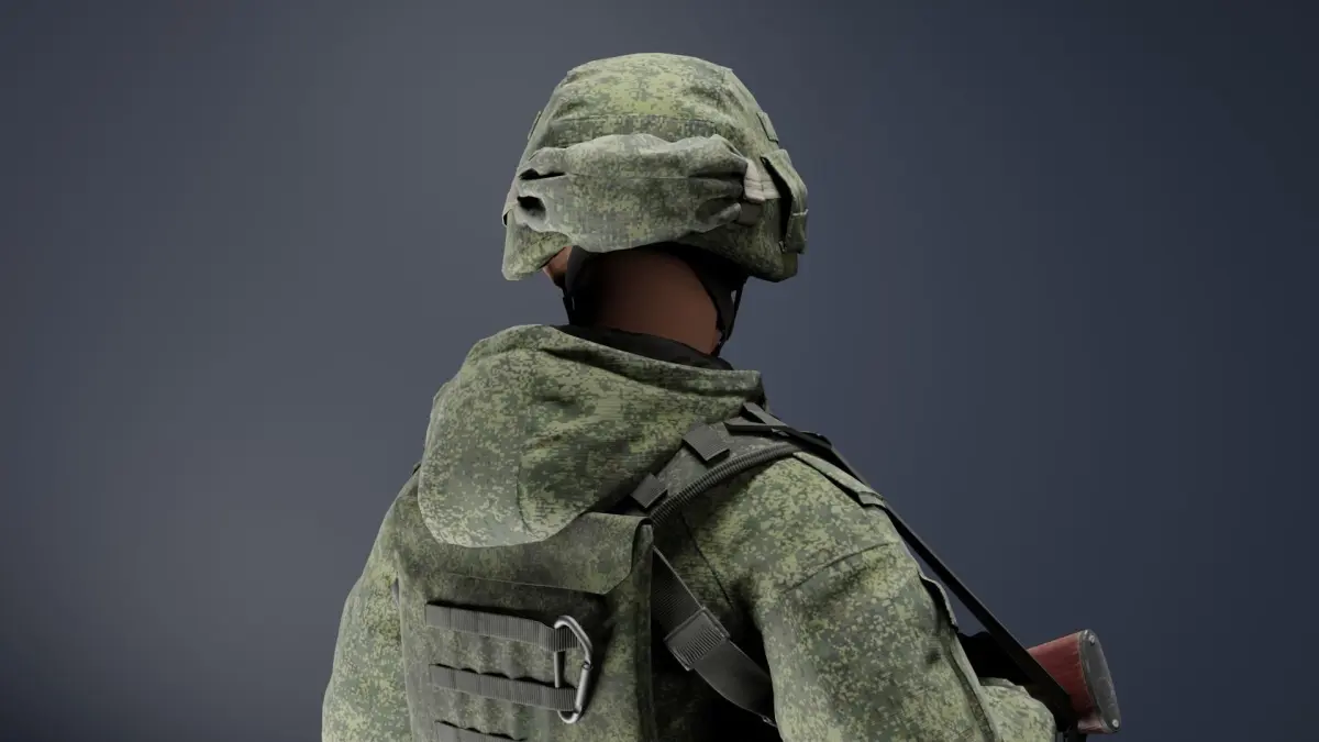 The 3D model of a modern Russian soldier in Ratnik uniform is a highly detailed representation of the cutting-edge military equipment used by Russian ground forces. The Ratnik system is a new generation of combat gear designed to enhance the effectiveness and survivability of soldiers on the battlefield.