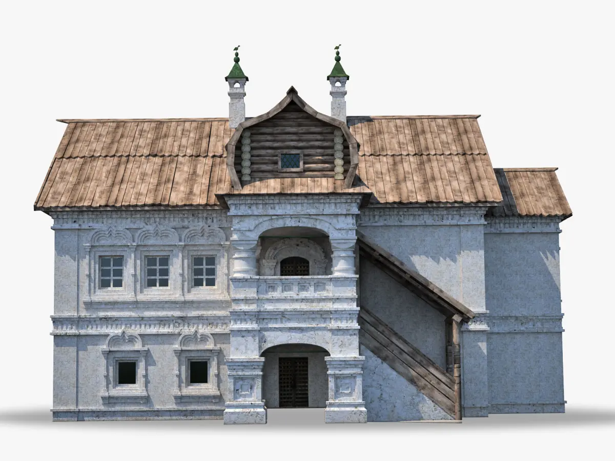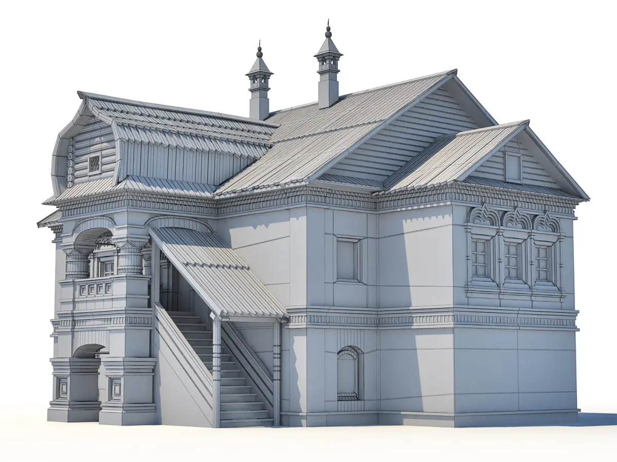 Detailed model of russian historic house extetior. Created in 3dsmax, rendered with V-Ray.Real world scale.Textures and light rig included into MAX scene.