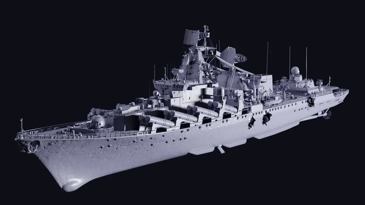 3d model of the Russian missile cruiser Moskva, shot down by the armed forces of Ukraine. The Russian warship go fuck yourself model was created to order for a Ukrainian general's aquarium.