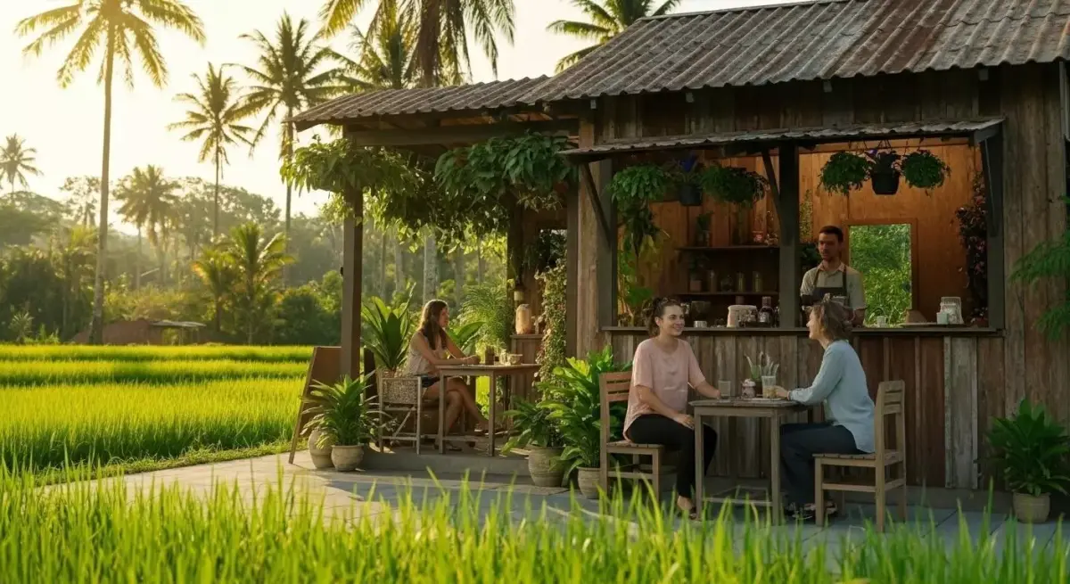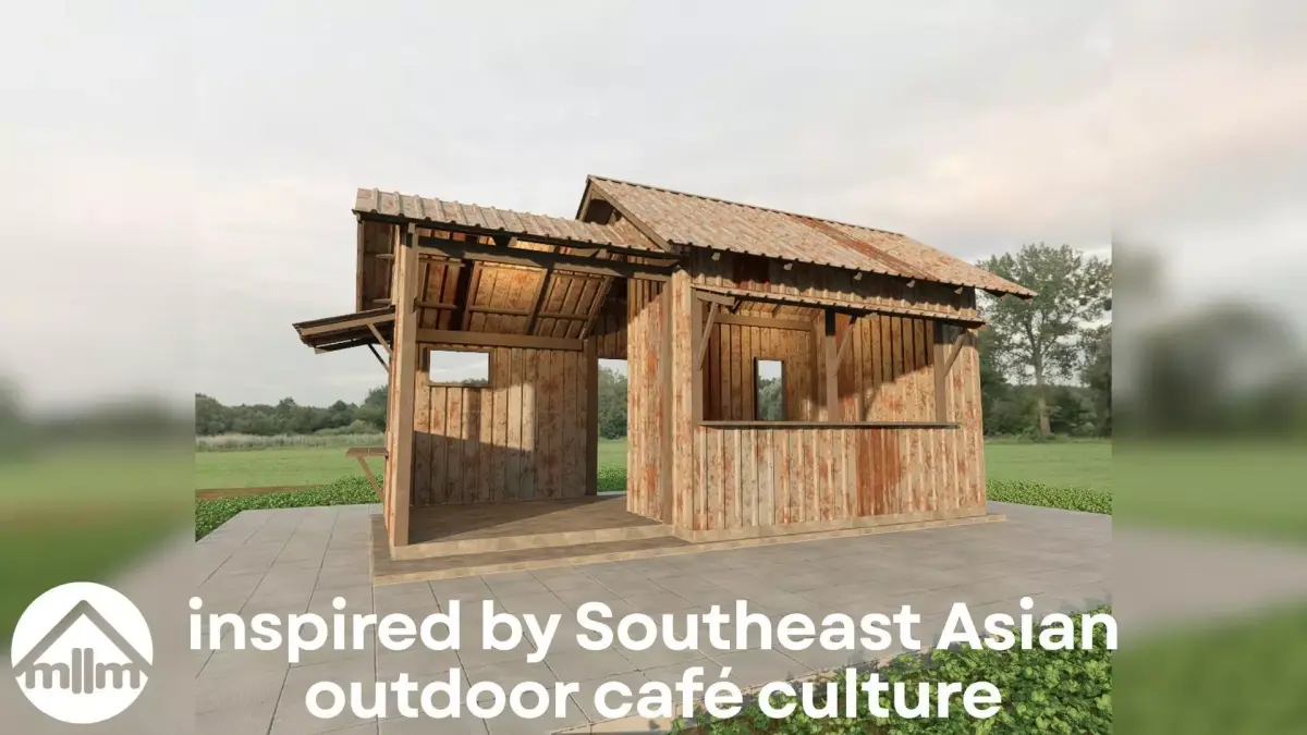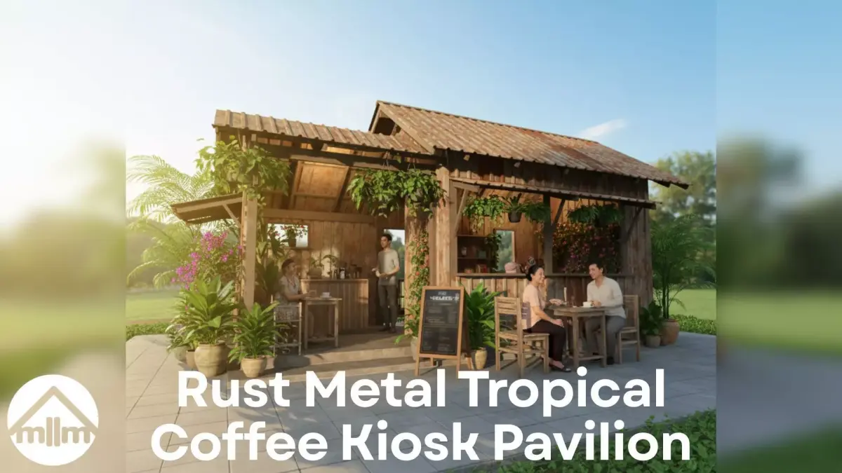 A small rustic coffee kiosk inspired by Southeast Asian outdoor café culture.Simple pavilion form with corrugated rust metal roof and wall panels, open-front layout, and deep overhangs for shade.Designed for tropical settings, rural cafés, garden parks, and lifestyle scenes.Clean geometry, optimized polygon count, suitable for exterior visualization and real-time use.