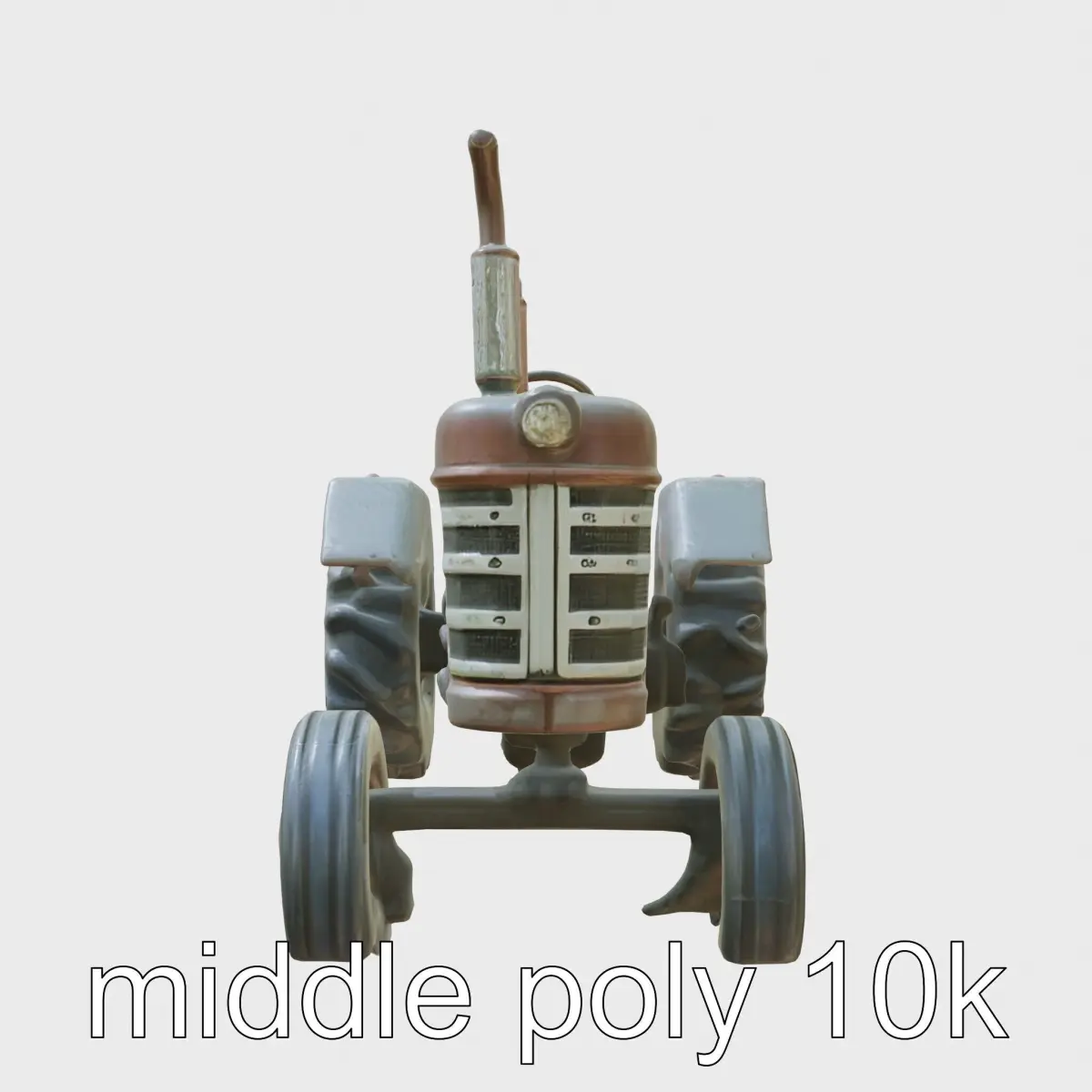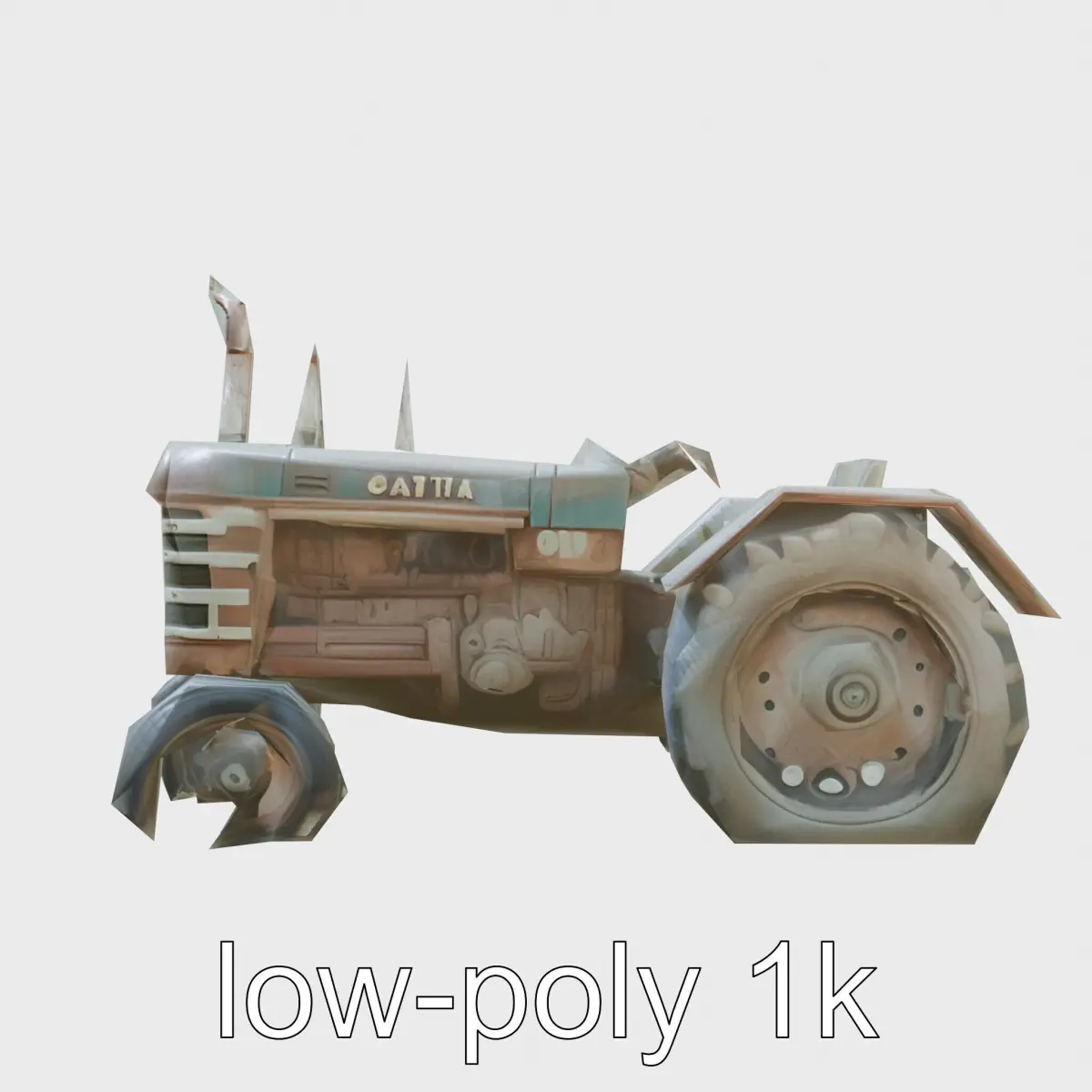 This 3D model features a rusted, abandoned tractor set in a post-apocalyptic scene. It offers three levels of detail (low-poly, middle-poly, and high-poly) suitable for production rendering, game engines, and interactive presentations, allowing choice based on the LOD System principle. Ideal for depicting desolate landscapes, barren lands, or cinematic scenarios. The model is fully textured with PBR materials, including Diffuse, NormalMap, reflection/roughness/metallic, ensuring compatibility with modern rendering engines like 3ds Max, Maya, Cinema4D, Blender, Vray, Corona, and Cycles, as well as game engines like Unity and Unreal Engine. Perfect UV mapping ensures no overlaps. All textures are 4096x4096 in size. If you enjoy this model, please like and leave a comment.