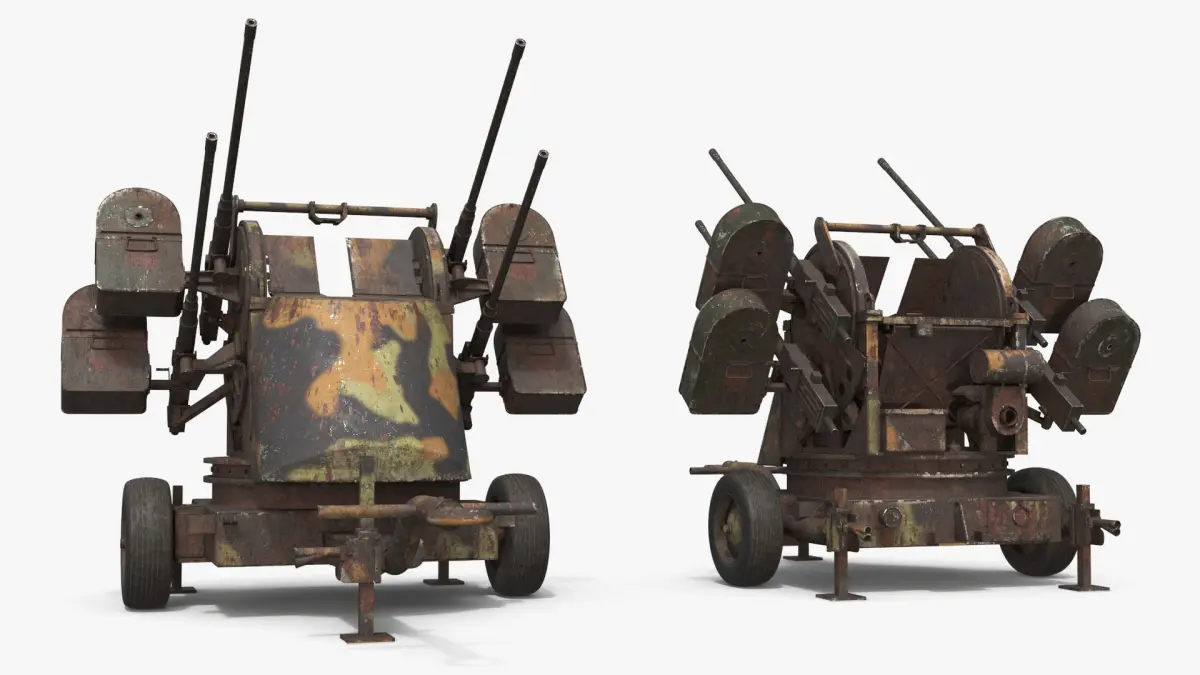 Rusted Abandoned WWII Quad Mounted Anti-Aircraft Gun is a high quality, photo real 3d model that will enhance detail and realism to any of your rendering projects. The model has a fully textured, detailed design that allows for close-up renders, and was originally modeled in 3ds Max 2020 and rendered with V-Ray. Renders have no postprocessing!
